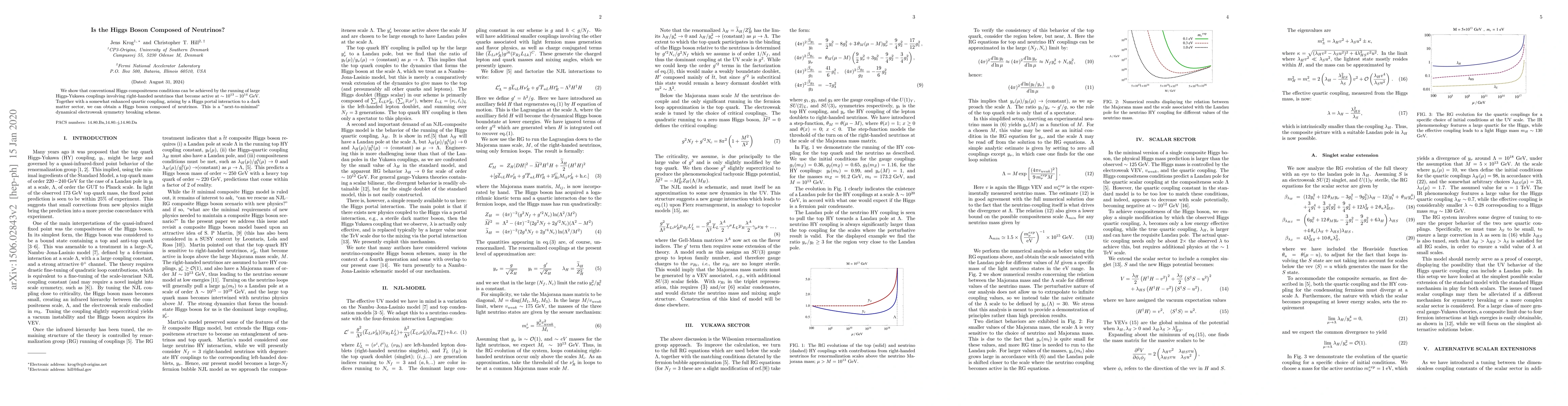 We show that conventional Higgs compositeness conditions can be achieved by the running of large Higgs-Yukawa couplings involving right-handed neutrinos that become active at $\sim 10^{13}- 10^{14}$ GeV. Together with a somewhat enhanced quartic coupling, arising by a Higgs portal interaction to a dark matter sector, we can obtain a Higgs boson composed of neutrinos. This is a "next-to-minimal" dynamical electroweak symmetry breaking scheme.