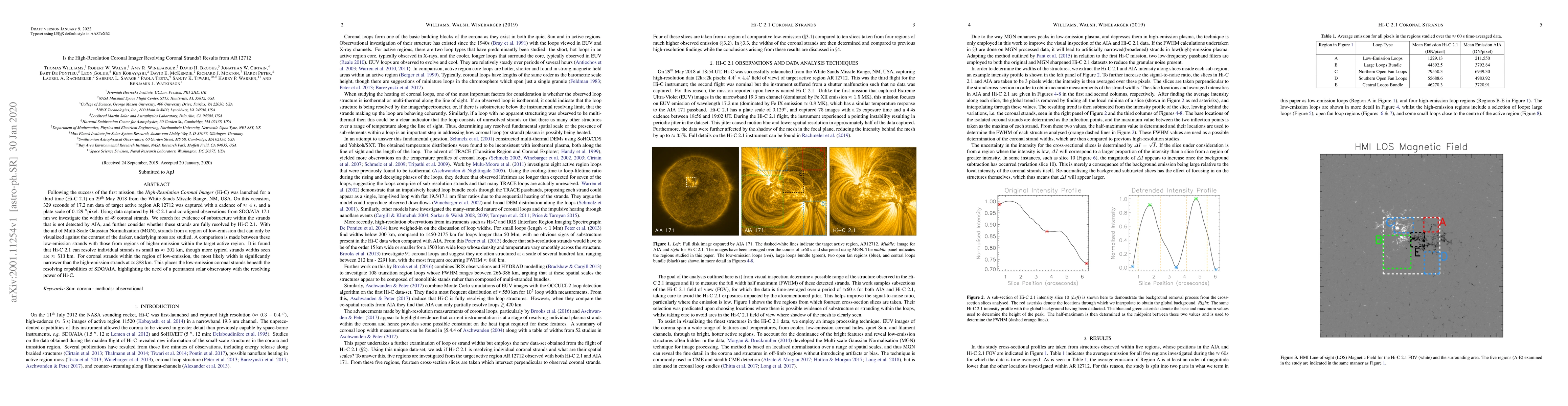 Following the success of the first mission, the High-Resolution Coronal Imager (Hi-C) was launched for a third time (Hi-C 2.1) on 29th May 2018 from the White Sands Missile Range, NM, USA. On this occasion, 329 seconds of 17.2 nm data of target active region AR 12712 was captured with a cadence of ~4s, and a plate scale of 0.129''/pixel. Using data captured by Hi-C 2.1 and co-aligned observations from SDO/AIA 17.1 nm we investigate the widths of 49 coronal strands. We search for evidence of substructure within the strands that is not detected by AIA, and further consider whether these strands are fully resolved by Hi-C 2.1. With the aid of Multi-Scale Gaussian Normalization (MGN), strands from a region of low-emission that can only be visualized against the contrast of the darker, underlying moss are studied. A comparison is made between these low-emission strands with those from regions of higher emission within the target active region. It is found that Hi-C 2.1 can resolve individual strands as small as ~202km, though more typical strands widths seen are ~513km. For coronal strands within the region of low-emission, the most likely width is significantly narrower than the high-emission strands at ~388km. This places the low-emission coronal strands beneath the resolving capabilities of SDO/AIA, highlighting the need of a permanent solar observatory with the resolving power of Hi-C.