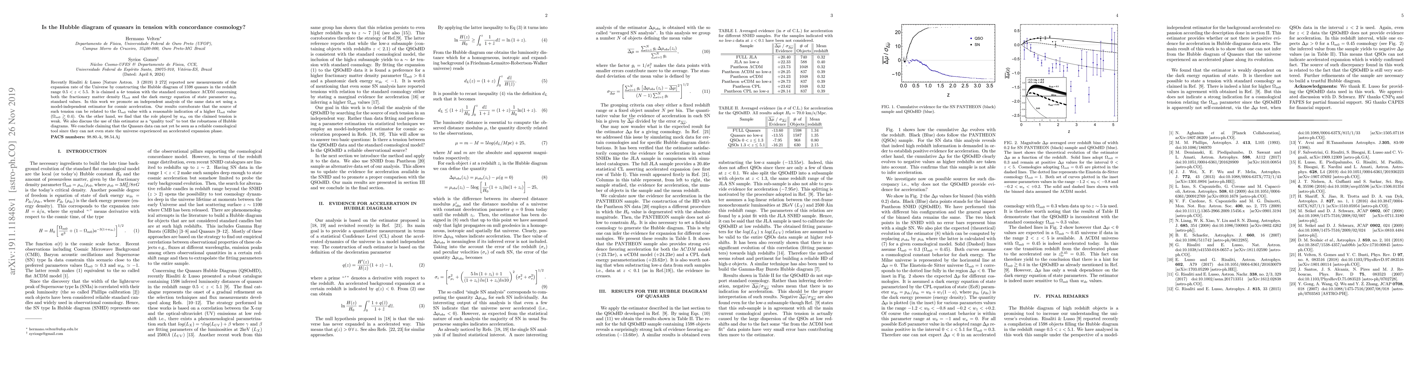 Recently Risaliti \& Lusso [Nature Astron. 3 (2019) 3 272] reported new