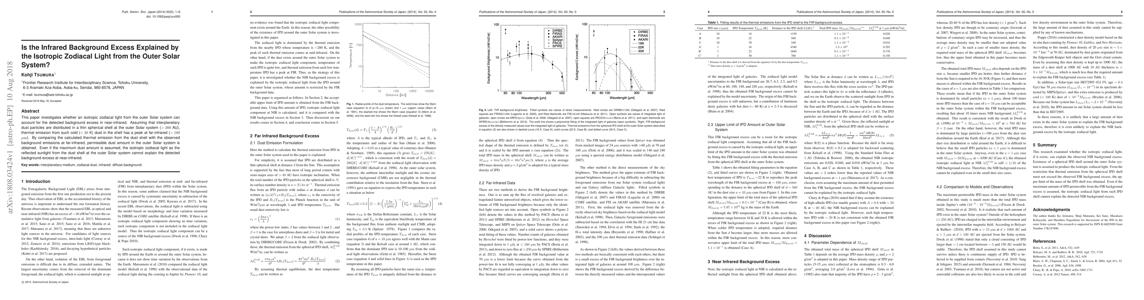 This paper examines if the isotropic zodiacal light from the outer Solar System explains the detected infrared background excess. Despite calculating the thermal emission from a dust shell at >200 AU, the study concludes that even the maximum permissible dust amount cannot account for the observed near-infrared background excess.