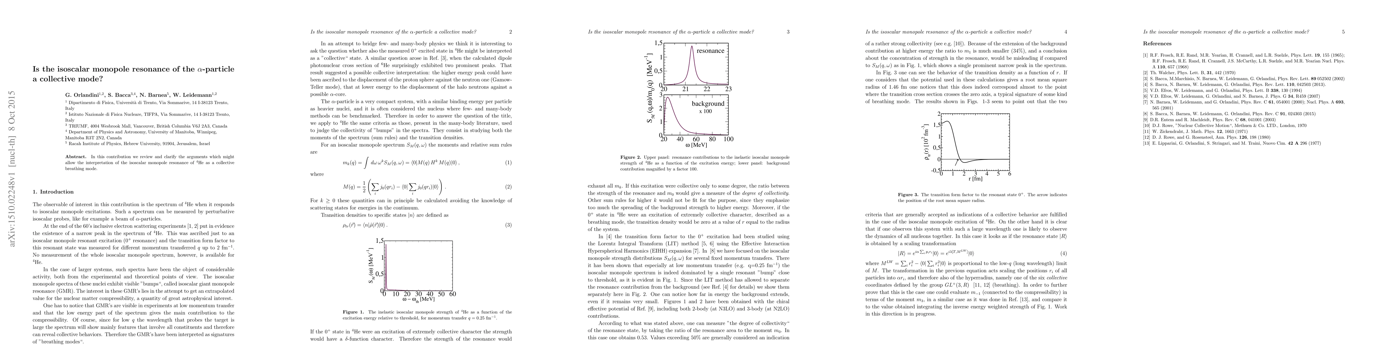 In this contribution we review and clarify the arguments which might allow the interpretation of the isoscalar monopole resonance of $^4$He as a collective breathing mode.