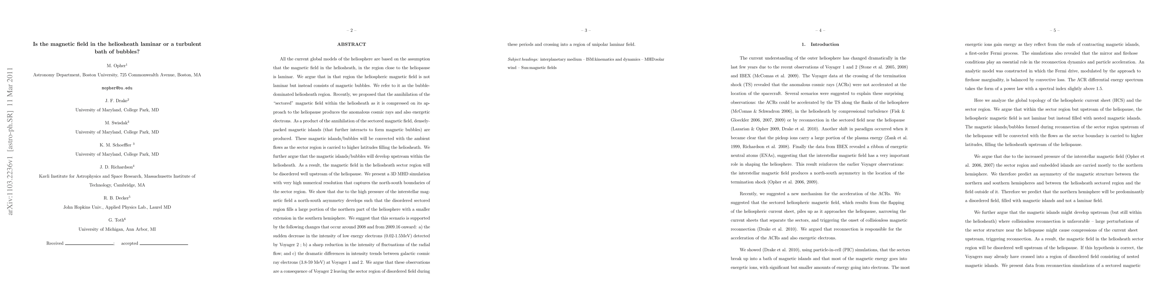 This paper challenges the prevailing assumption that the magnetic field in the heliosheath is laminar, proposing instead that it consists of magnetic bubbles formed by the annihilation of the sectored magnetic field. The authors present a high-resolution 3D MHD simulation showing that these magnetic islands/bubbles create a disordered field in the heliosheath, supported by observations of changes in electron intensity and cosmic ray trends around 2008.