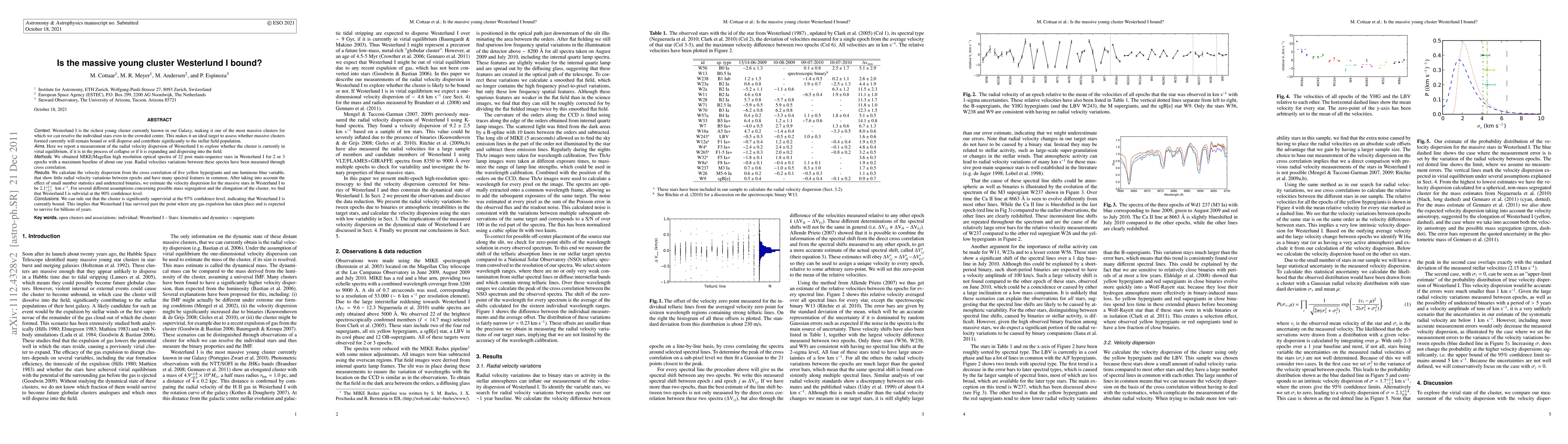 Researchers have found that the Westerlund I cluster, a massive young star cluster in the Milky Way, is currently bound and not dispersing into space. Their study used high-resolution spectroscopy to measure the cluster's radial velocity dispersion, concluding that it is subvirial at 90% confidence.