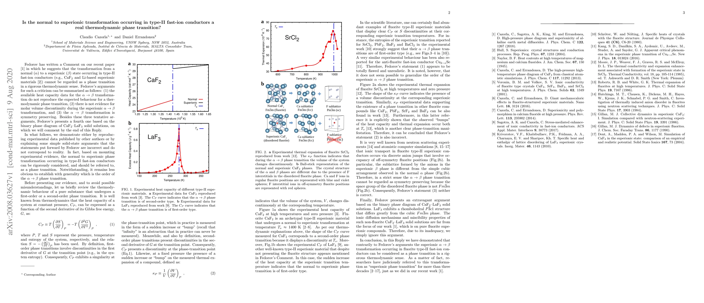 Fedorov has written a Comment on our recent paper J. Phys. Chem. C 112, 1267 (2018) in which he suggests that the transformation from a normal ($\alpha$) to a superionic ($\beta$) state occurring in type-II fast-ion conductors (e.g., CaF$_{2}$ and Li-based superionic materials) cannot be regarded as a phase transition in a rigorous thermodynamic sense. Fedorov's arguments for such a criticism can be summarized as follows: (1) the available heat capacity data for the $\alpha \to \beta$ transformation do not reproduce the expected behaviour for a thermodynamic phase transition, (2) there is not evidence for molar volume discontinuity during the superionic $\alpha \to \beta$ transformation, and (3) the $\alpha \to \beta$ transformation is symmetry preserving. Here, we demonstrate either by reproducing experimental data published by other authors or by explaining some simple solid-state arguments that the statements put forward by Fedorov are incorrect and do not correspond to reality. In fact, based on mounting experimental evidence, the normal to superionic phase transformation occurring in type-II fast-ion conductors can be rigorously considered, and should be referred to, as a phase transition. Notwithstanding, it remains less obvious to establish with generality which is the order of the $\alpha \to \beta$ phase transition.
