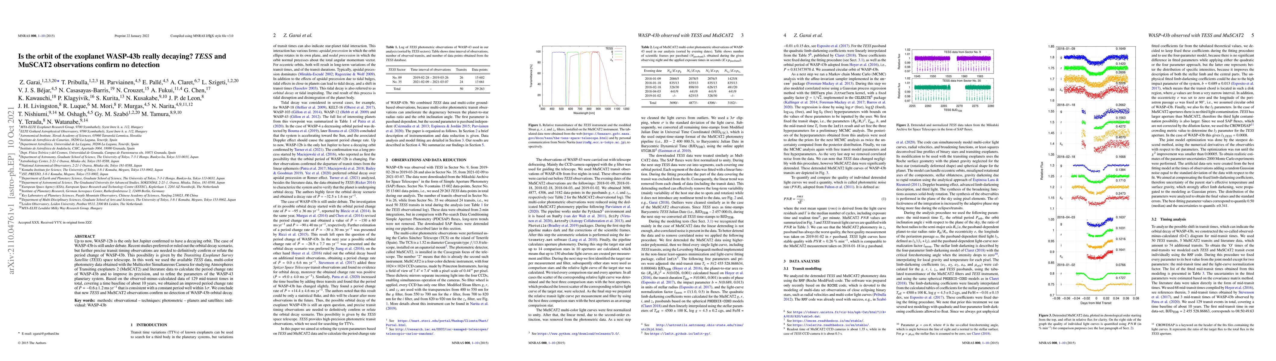 This study using TESS and MuSCAT2 data finds no evidence of orbital decay for the exoplanet WASP-43b, reporting a period change rate of $\dot{P} = -0.6 \pm 1.2$ ms yr$^{-1}$, consistent with a constant period. Thus, the possibility of orbital decay for WASP-43b remains unconfirmed.