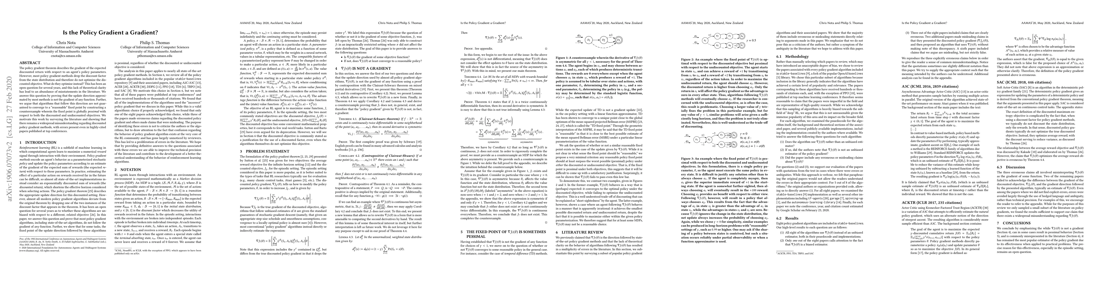 This paper clarifies misconceptions about policy gradient methods, proving that most methods do not optimize the expected discounted return, but rather a different objective. It argues that these methods may not converge to a satisfactory fixed point due to their deviation from the true gradient.