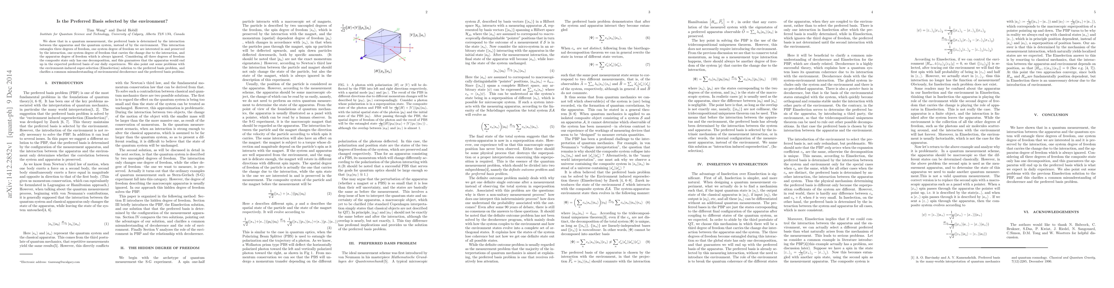 This paper argues that the preferred basis in quantum measurement is determined by the interaction between the apparatus and the quantum system, rather than by the environment. It highlights that this interaction entangles three degrees of freedom, leading to a single composite state decomposition that aligns with the expected preferred basis.