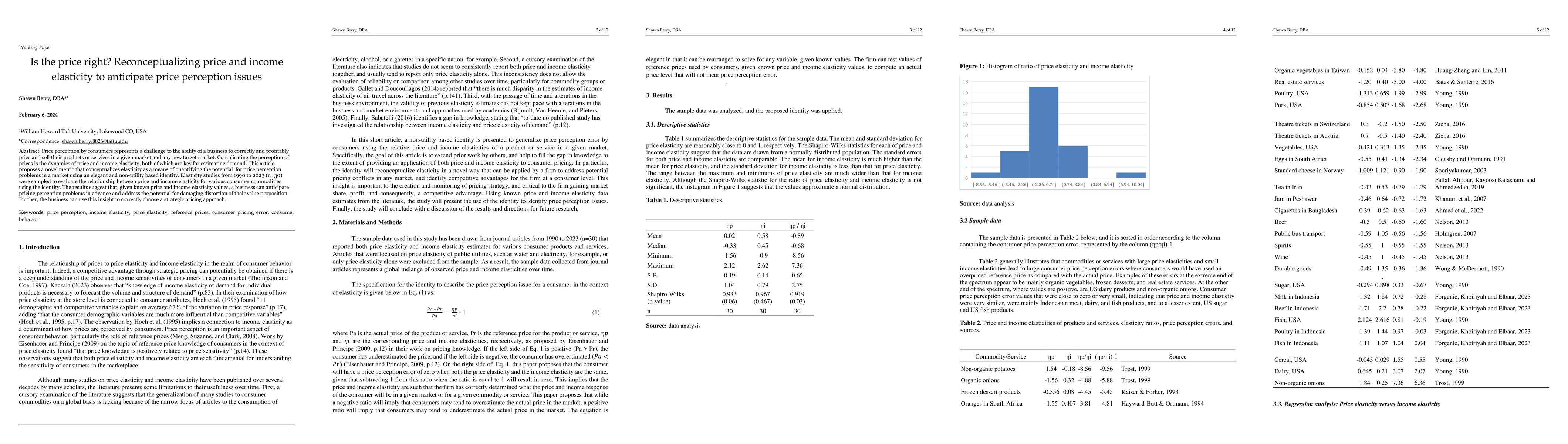 This paper proposes a new identity to quantify price perception issues by reconceptualizing price and income elasticity, enabling businesses to anticipate and address potential distortions in their value proposition. Analysis of elasticity studies from 1990 to 2023 suggests that this approach can help firms select strategic pricing methods to better align with consumer perceptions.