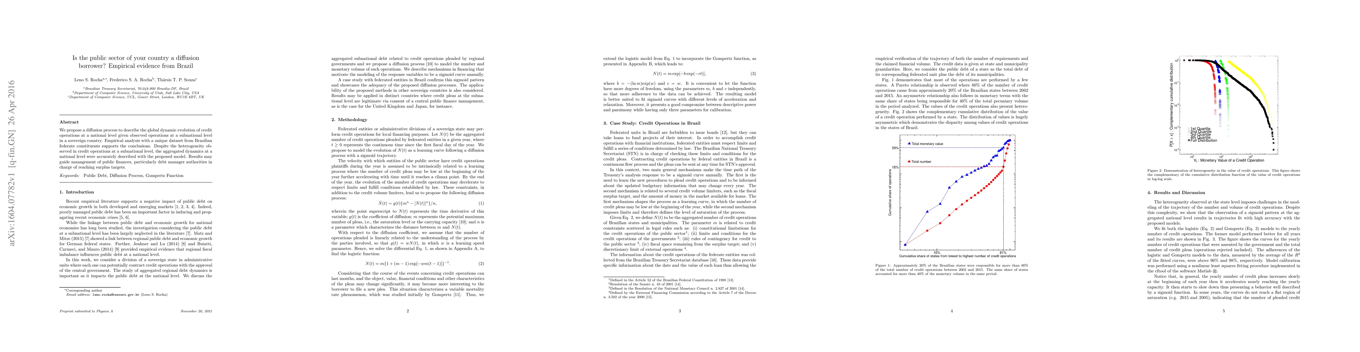 This study introduces a diffusion process model to explain Brazil's national credit operations based on subnational data. The model accurately represents aggregated national dynamics, offering insights for public finance management, especially for debt authorities aiming for surplus targets.