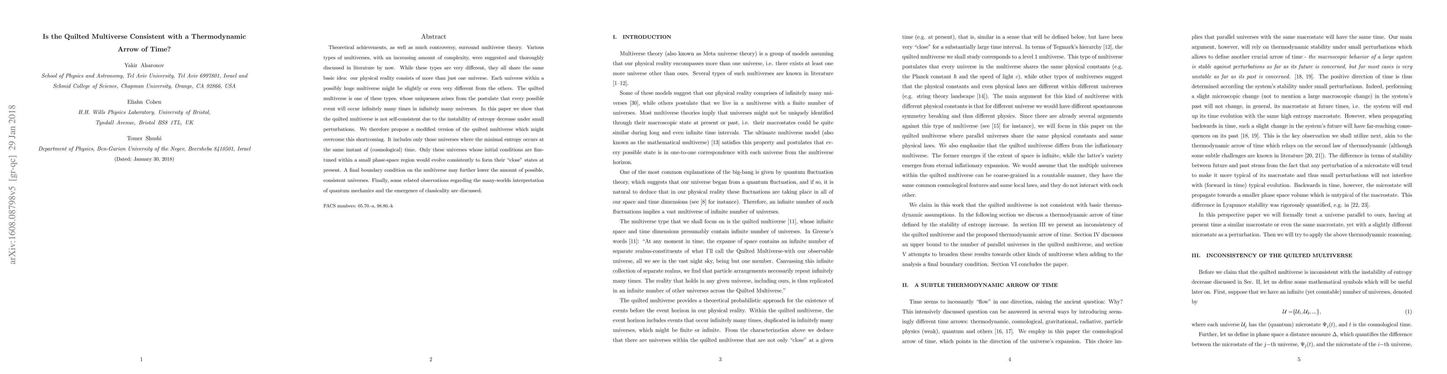 The quilted multiverse theory is flawed due to entropy instability, but a modified version proposes universes with minimal entropy at the same instant of time, addressing consistency issues.