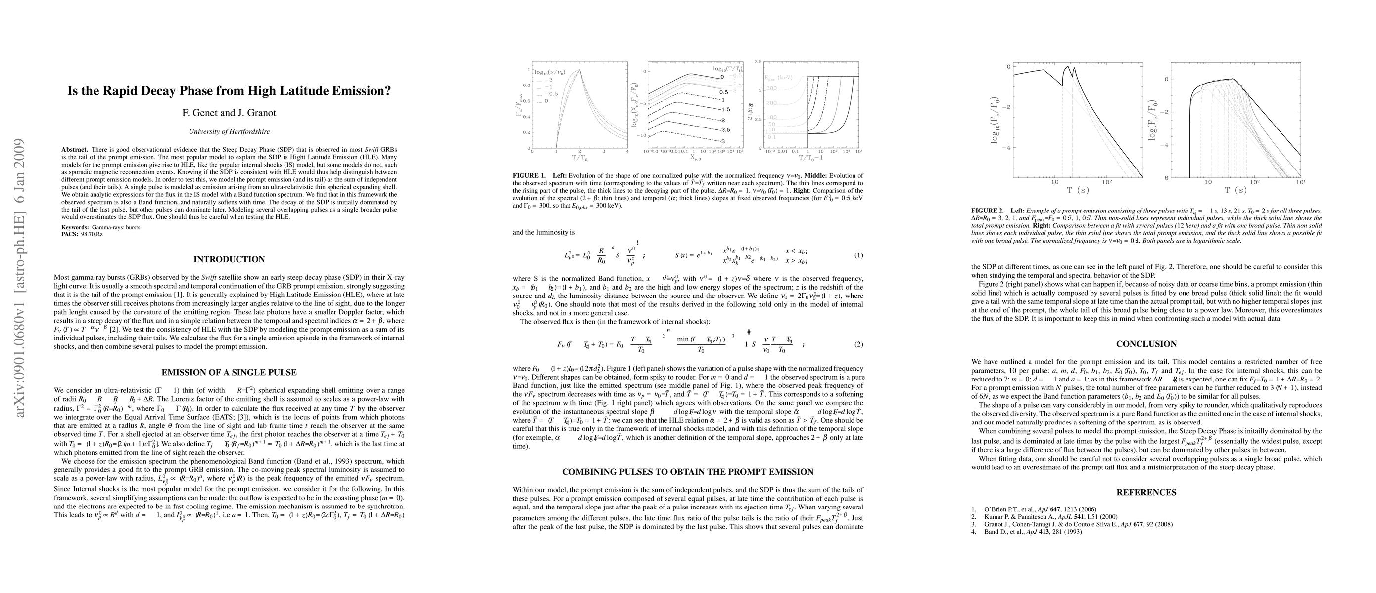 There is good observationnal evidence that the Steep Decay Phase (SDP) that is observed in most Swift GRBs is the tail of the prompt emission. The most popular model to explain the SDP is Hight Latitude Emission (HLE). Many models for the prompt emission give rise to HLE, like the popular internal shocks (IS) model, but some models do not, such as sporadic magnetic reconnection events. Knowing if the SDP is consistent with HLE would thus help distinguish between different prompt emission models. In order to test this, we model the prompt emission (and its tail) as the sum of independent pulses (and their tails). A single pulse is modeled as emission arising from an ultra-relativistic thin spherical expanding shell. We obtain analytic expressions for the flux in the IS model with a Band function spectrum. We find that in this framework the observed spectrum is also a Band function, and naturally softens with time. The decay of the SDP is initially dominated by the tail of the last pulse, but other pulses can dominate later. Modeling several overlapping pulses as a single broader pulse would overestimates the SDP flux. One should thus be careful when testing the HLE.
