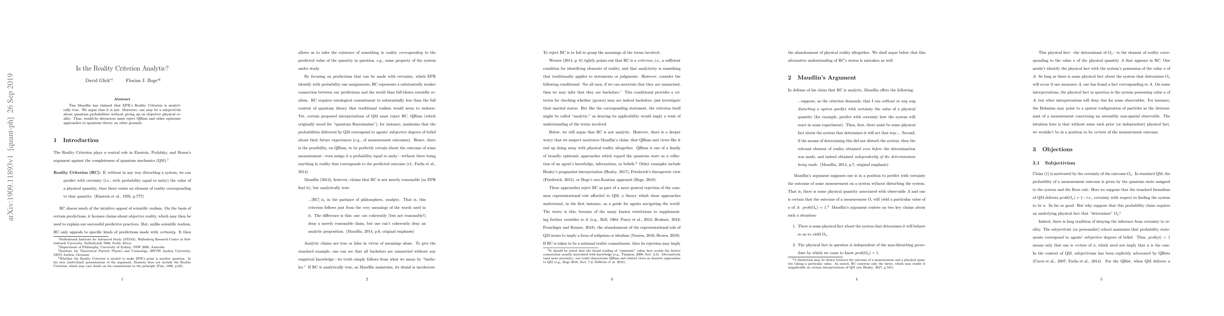 Summary: This paper disputes Tim Maudlin's assertion that the EPR's Reality Criterion is analytically true, arguing instead for a subjectivist view on quantum probabilities while maintaining objective physical reality, thus challenging QBism and other epistemic interpretations of quantum theory.