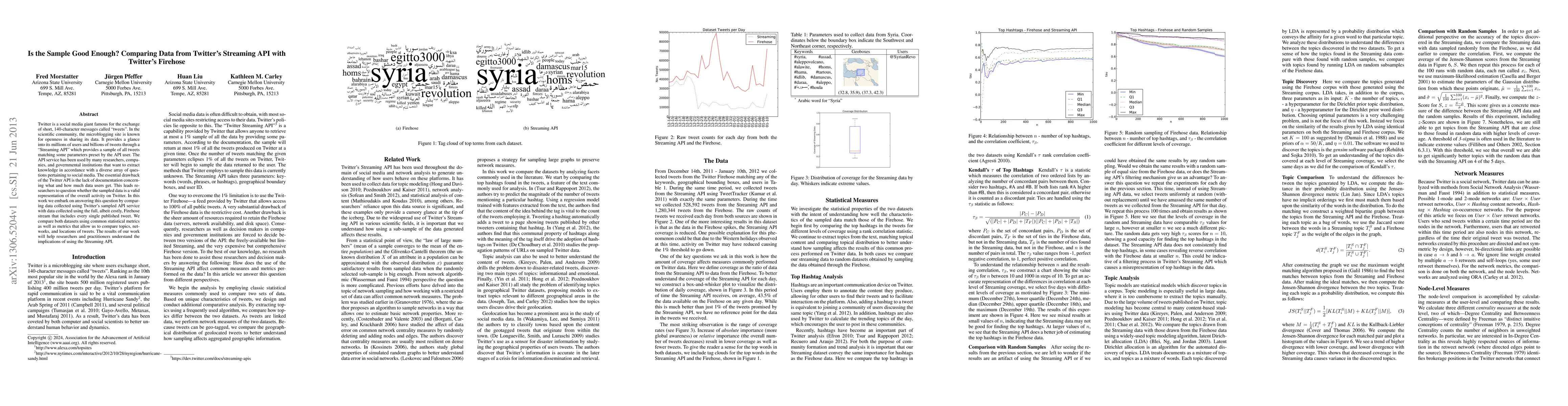 Researchers compared Twitter's Streaming API data with full Firehose data to determine its validity, finding significant differences in statistical metrics, topic coverage, networks, and locations.