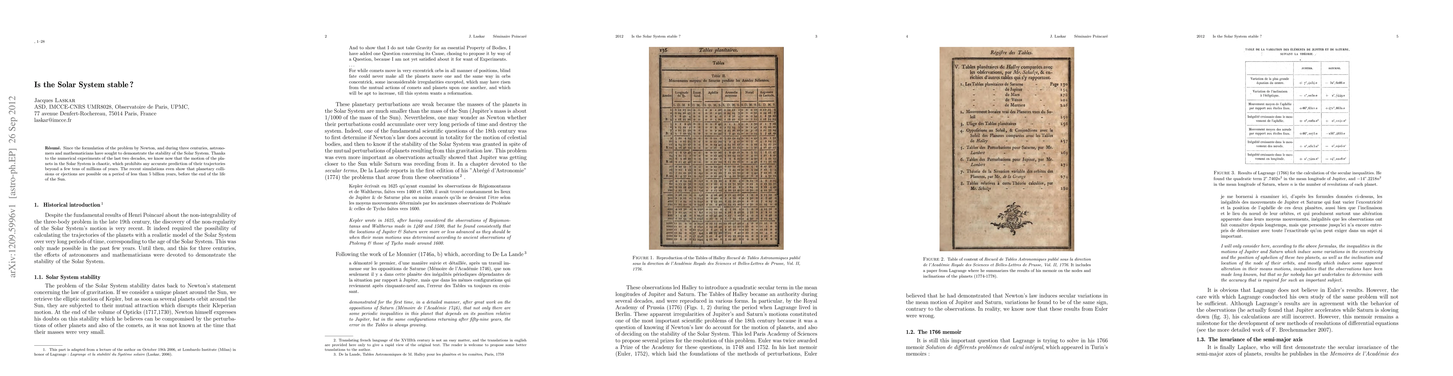 The Solar System's stability has long been debated; recent numerical simulations reveal chaotic planetary motion, making long-term predictions impossible and suggesting potential collisions or ejections within 5 billion years.
