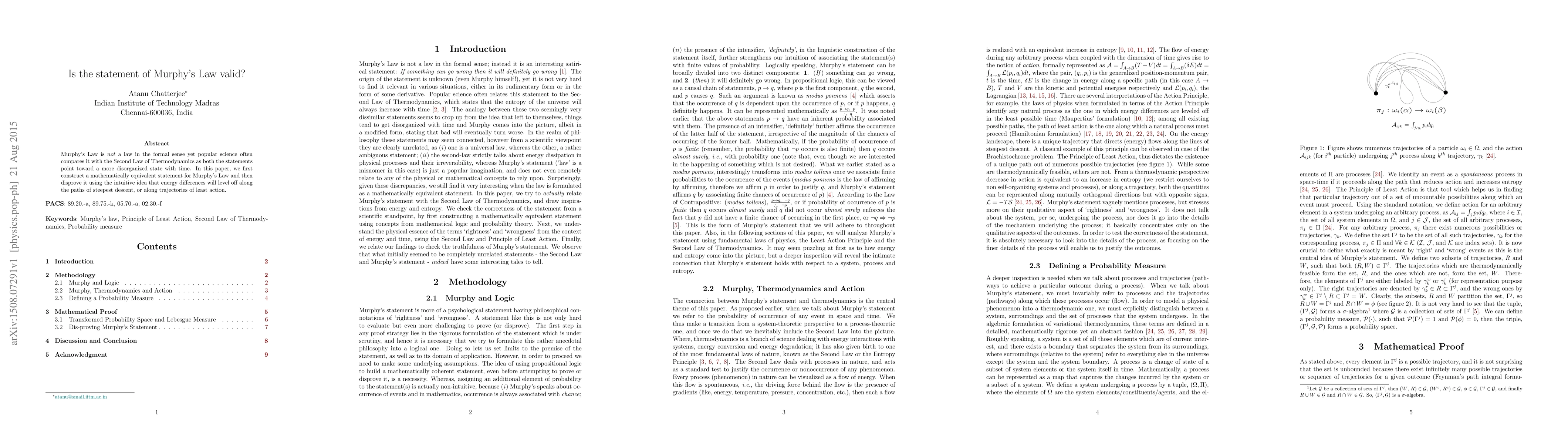 This paper mathematically formalizes Murphy's Law and disproves it by arguing that energy differences tend to level off, akin to trajectories of least action, thus invalidating the notion of increasing disorder over time.
