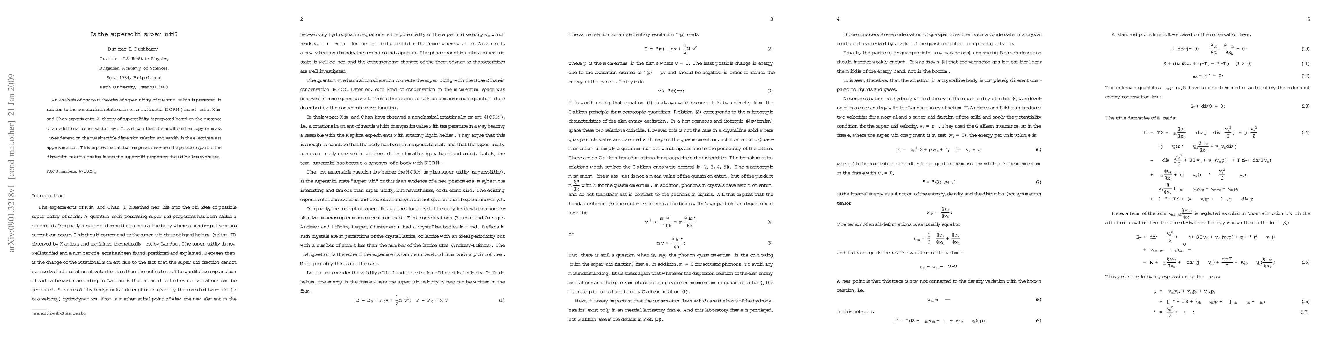 An analysis of previous theories of superfluidity of quantum solids is presented in relation to the nonclassical rotational moment of inertia (NCRM) found first in Kim and Chan experiments. A theory of supersolidity is proposed based on the presence of an additional conservation law. It is shown that the additional entropy or mass fluxes depend on the quasiparticle dispersion relation and vanish in the effective mass approximation. This implies that at low temperatures when the parabolic part of the dispersion relation predominates the supersolid properties should be less expressed.
