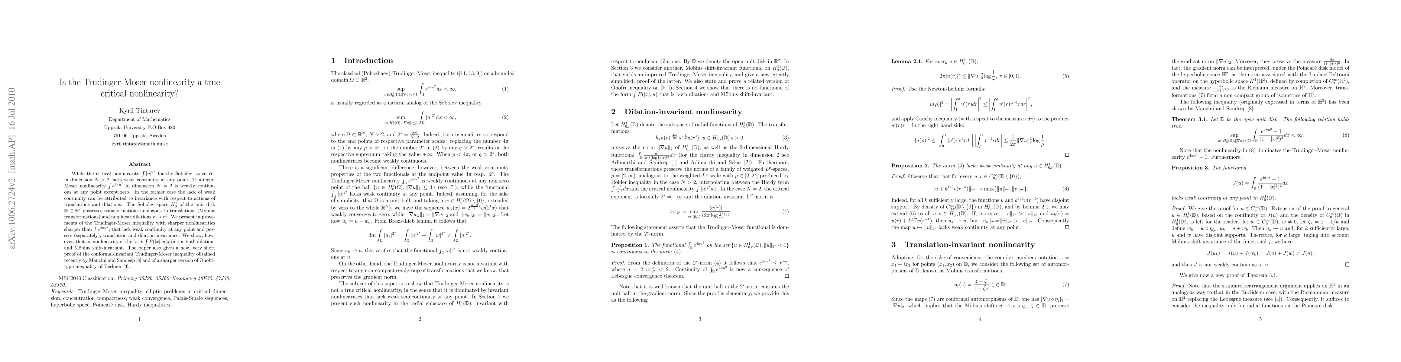 While the critical nonlinearity $\int |u|^{2^*}$ for the Sobolev space $H^1$ in dimension $N>2$ lacks weak continuity at any point, Trudinger-Moser nonlinearity $\int e^{4\pi u^2}$ in dimension $N=2$ is weakly continuous at any point except zero. In the former case the lack of weak continuity can be attributed to invariance with respect to actions of translations and dilations. The Sobolev space $H_0^1$ of the unit disk $\mathbb D\subset\R^2$ possesses transformations analogous to translations (M\"obius transformations) and nonlinear dilations $r\mapsto r^s$. We present improvements of the Trudinger-Moser inequality with sharper nonlinearities sharper than $\int e^{4\pi u^2}$, that lack weak continuity at any point and possess (separately), translation and dilation invariance. We show, however, that no nonlinearity of the form $\int F(|x|,u(x))\mathrm{d}x$ is both dilation- and M\"obius shift-invariant. The paper also gives a new, very short proof of the conformal-invariant Trudinger-Moser inequality obtained recently by Mancini and Sandeep and of a sharper version of Onofri-type inequality of Beckner.