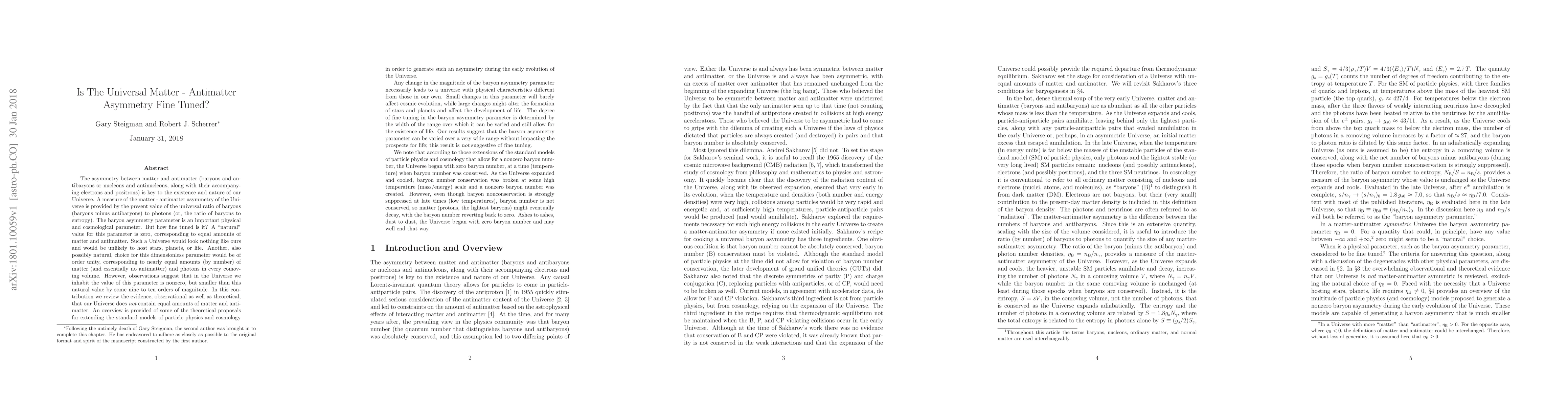 This paper investigates the matter-antimatter asymmetry in the Universe, examining whether the observed baryon asymmetry parameter is finely tuned. It concludes that the parameter can vary widely without affecting the possibility of life, suggesting that the observed asymmetry is not finely tuned.