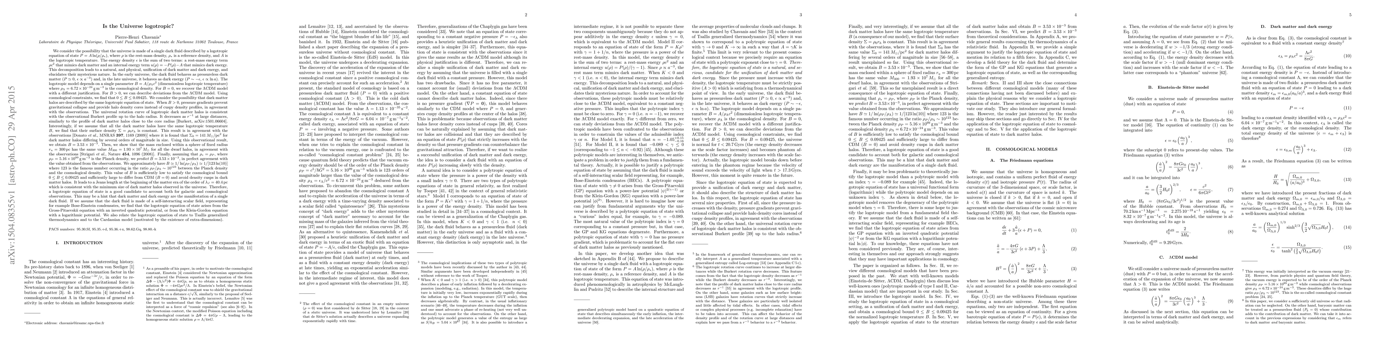The logotropic model suggests that the universe is made of a single dark fluid with a unique equation of state, unifying dark matter and dark energy, and predicts consistent results for dark matter halo density profiles and surface densities.
