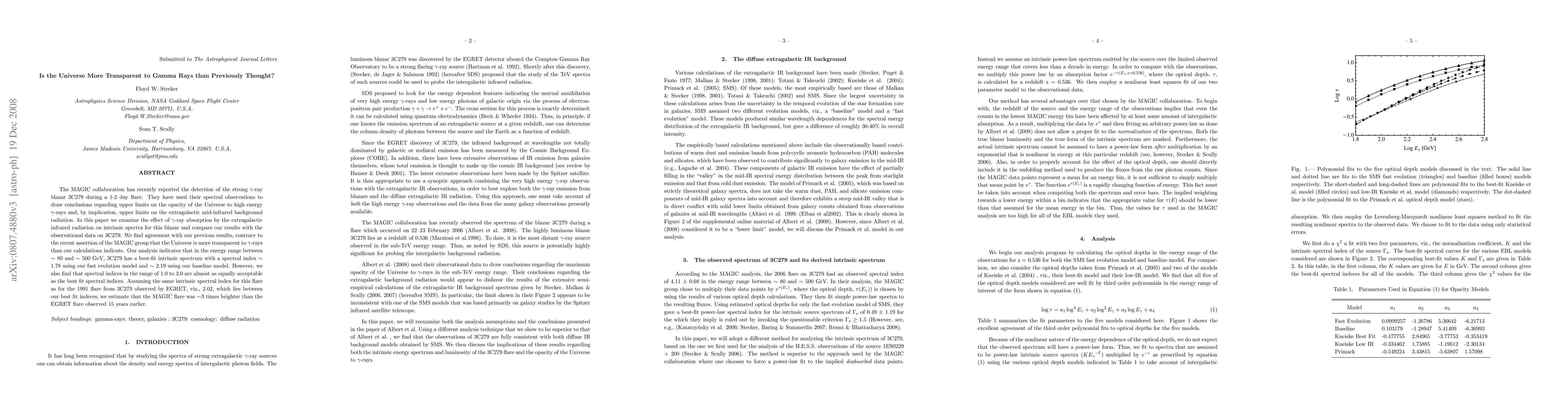 The MAGIC collaboration has recently reported the detection of the strong gamma-ray blazar 3C279 during a 1-2 day flare. They have used their spectral observations to draw conclusions regarding upper limits on the opacity of the Universe to high energy gamma-rays and, by implication, upper limits on the extragalactic mid-infrared background radiation. In this paper we examine the effect of gamma-ray absorption by the extragalactic infrared radiation on intrinsic spectra for this blazar and compare our results with the observational data on 3C279. We find agreement with our previous results, contrary to the recent assertion of the MAGIC group that the Universe is more transparent to \gray s than our calculations indicate. Our analysis indicates that in the energy range between ~80 and ~500 GeV, 3C279 has a best-fit intrinsic spectrum with a spectral index ~1.78 using our fast evolution model and ~2.19 using our baseline model. However, we also find that spectral indices in the range of 0.0 to 3.0 are almost as equally acceptable as the best fit spectral indices. Assuming the same intrinsic spectral index for this flare as for the 1991 flare from 3C279 observed by EGRET, viz., 2.02, which lies between our best fit indices, we estimate that the MAGIC flare was ~3 times brighter than the EGRET flare observed 15 years earlier.