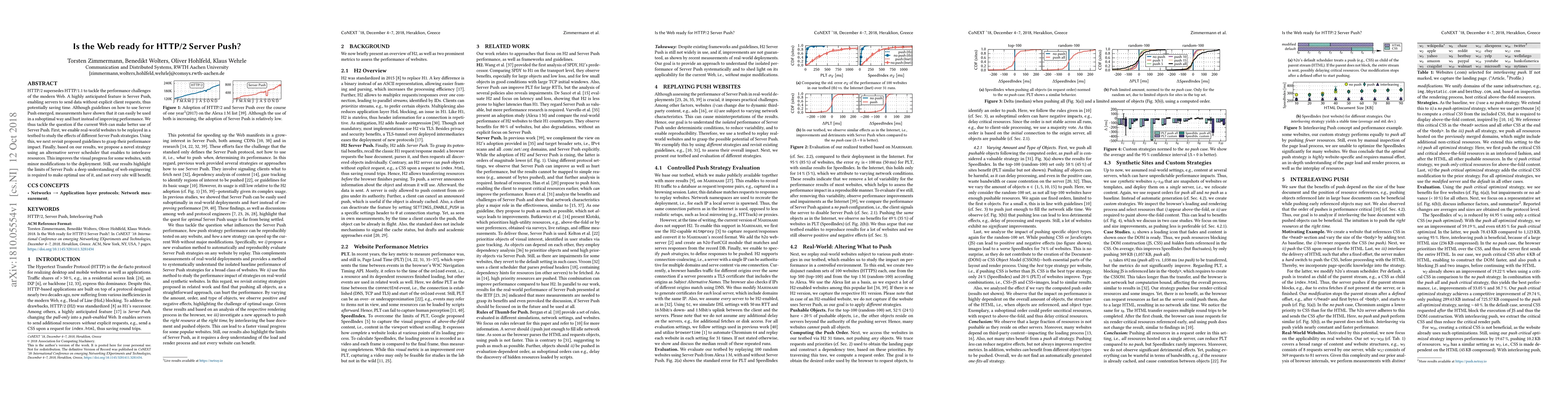 This paper investigates the readiness of the Web for HTTP/2 Server Push, finding that while it has the potential to improve performance, current usage often leads to suboptimal results. The study proposes a novel interleaving server scheduler strategy that enhances visual progress for some websites but emphasizes the need for deep web engineering knowledge to optimize Server Push effectively.