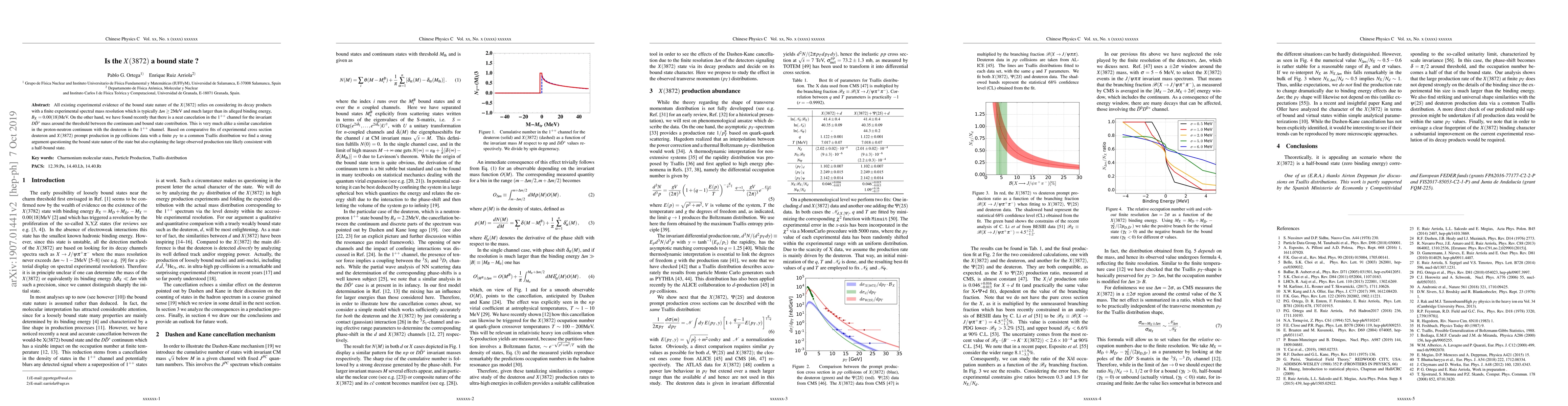All existing experimental evidence of the bound state nature of the $X(3872)$ relies on considering its decay products with a finite experimental spectral mass resolution which is typically $\Delta m \ge 2 $MeV and much larger than its alleged binding energy, $B_X=0.00(18)$MeV. On the other hand, we have found recently that there is a neat cancellation in the $1^{++}$ channel for the invariant $D \bar D^*$ mass around the threshold between the continuum and bound state contribution. This is very much alike a similar cancellation in the proton-neutron continuum with the deuteron in the $1^{++}$ channel. Based on comparative fits of experimental cross section deuteron and $X(3872)$ prompt production in pp collisions data with a finite $p_T$ to a common Tsallis distribution we find a strong argument questioning the bound state nature of the state but also explaining the large observed production rate likely consistent with a half-bound state.