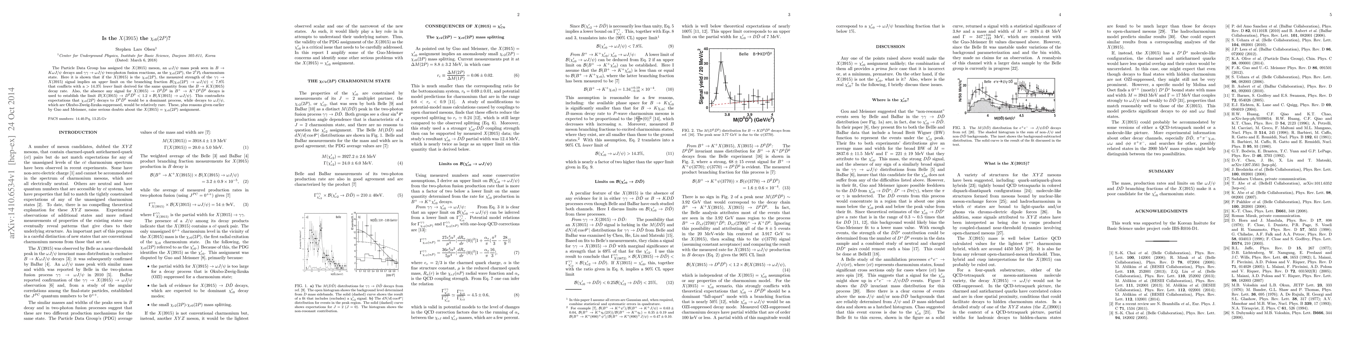 The paper questions whether the X(3915) meson is the chi_{c0}(2P) charmonium state, finding that its properties conflict with expected decay behaviors, thus casting doubt on this assignment. The analysis reveals discrepancies in decay branching fractions that challenge the current identification.