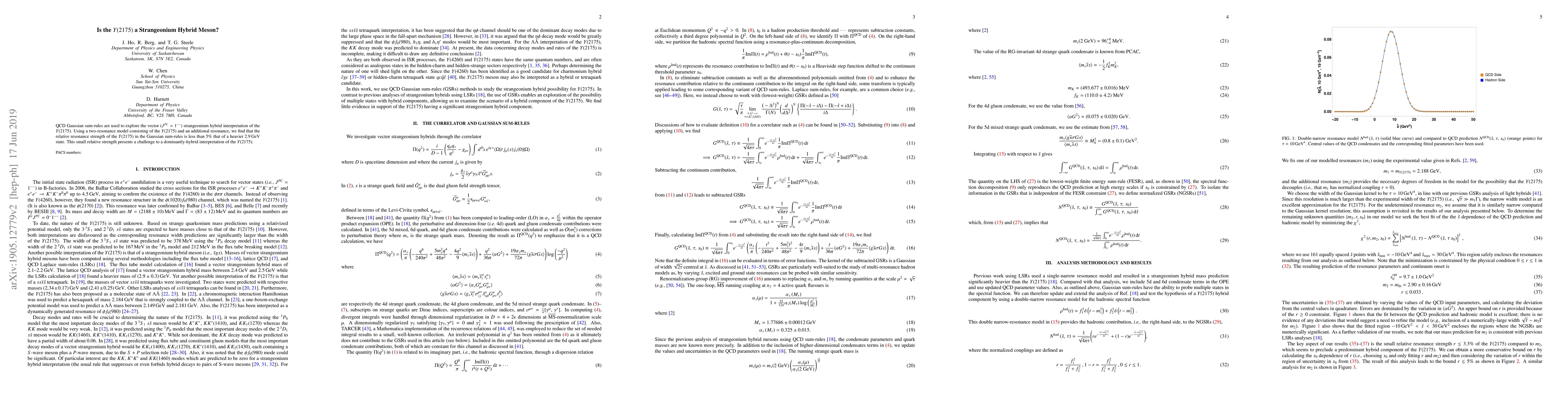 The study investigates the possibility of the $Y(2175)$ being a strangeonium hybrid meson using QCD Gaussian sum-rules, finding that its resonance strength is less than 5% that of a 2.9 GeV state, challenging its hybrid interpretation.