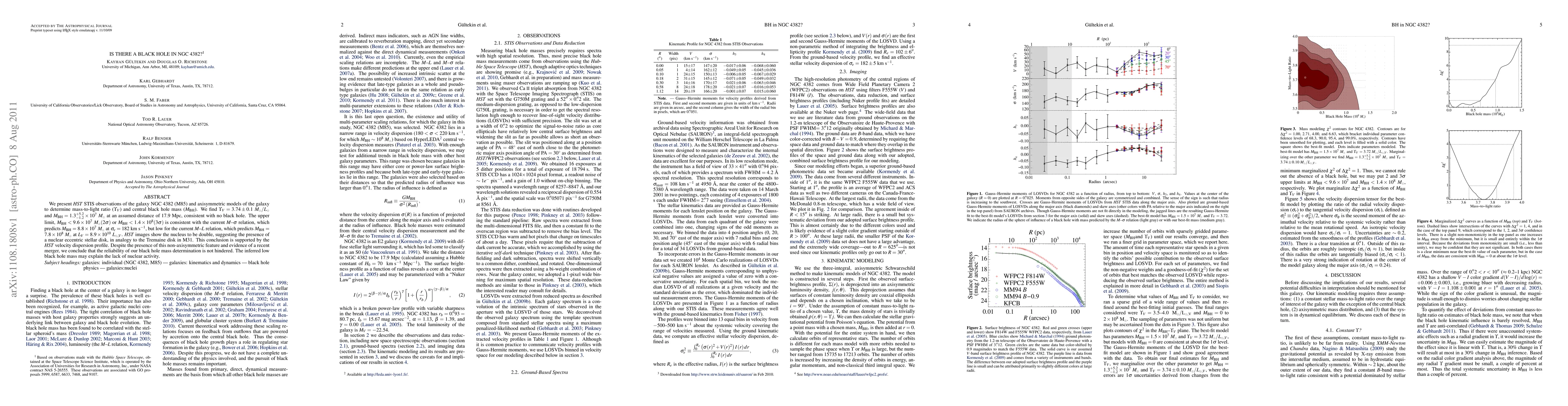 A study using HST STIS observations found no evidence of a black hole in galaxy NGC 4382, with an upper limit of M_BH < 1.4 imes 10^8 M_sun.
