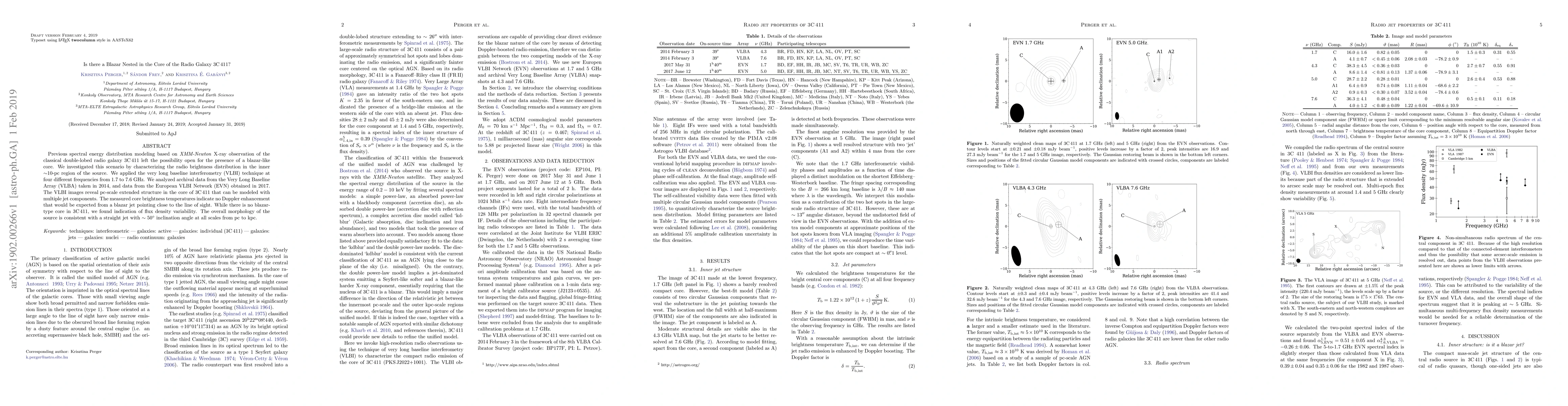 Research suggests that 3C 411 has a radio galaxy morphology consistent with a straight jet with an incline angle of ~50 degrees, but lacks the characteristics of a blazar core, including no Doppler enhancement.