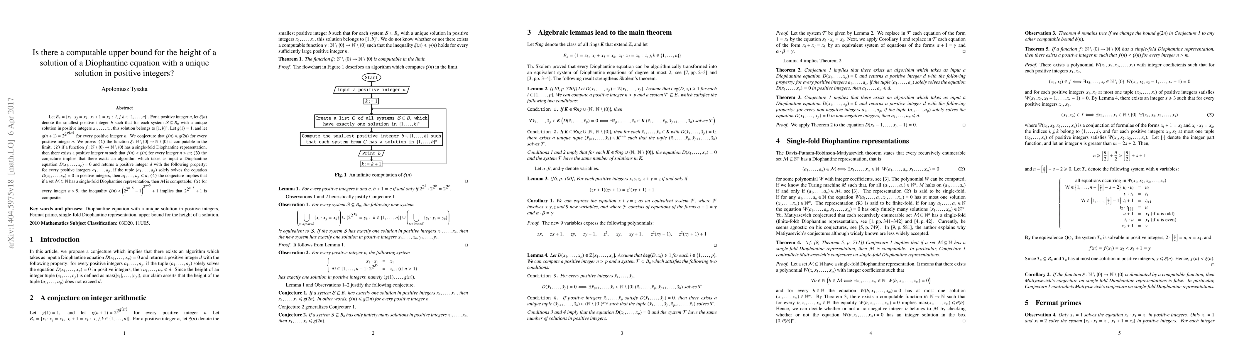 Let B_n={x_i \cdot x_j=x_k, x_i+1=x_k: i,j,k \in {1,...,n}}. For a positive integer n, let \xi(n) denote the smallest positive integer b such that for each system S \subseteq B_n with a unique solution in positive integers x_1,...,x_n, this solution belongs to [1,b]^n. Let g(1)=1, and let g(n+1)=2^{2^{g(n)}} for every positive integer n. We conjecture that \xi(n) \leq g(2n) for every positive integer n. We prove: (1) the function \xi: N\{0}-->N\{0} is computable in the limit; (2) if a function f:N\{0}-->N\{0} has a single-fold Diophantine representation, then there exists a positive integer m such that f(n)<\xi(n) for every integer n>m; (3) the conjecture implies that there exists an algorithm which takes as input a Diophantine equation D(x_1,...,x_p)=0 and returns a positive integer d with the following property: for every positive integers a_1,...,a_p, if the tuple (a_1,...,a_p) solely solves the equation D(x_1,...,x_p)=0 in positive integers, then a_1,...,a_p \leq d; (4) the conjecture implies that if a set M \subseteq N has a single-fold Diophantine representation, then M is computable; (5) for every integer n>9, the inequality \xi(n)<(2^{2^{n-5}}-1)^{2^{n-5}}+1 implies that 2^{2^{n-5}}+1 is composite.