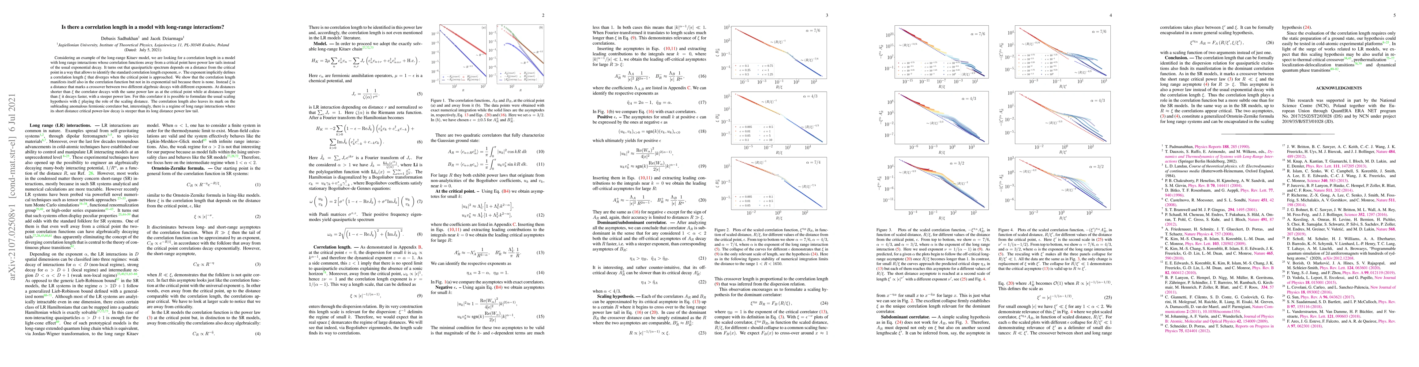 The research investigates the long-range Kitaev model to identify a correlation length in a system with power-law tails in correlation functions away from a critical point, contrasting with typical exponential decay.