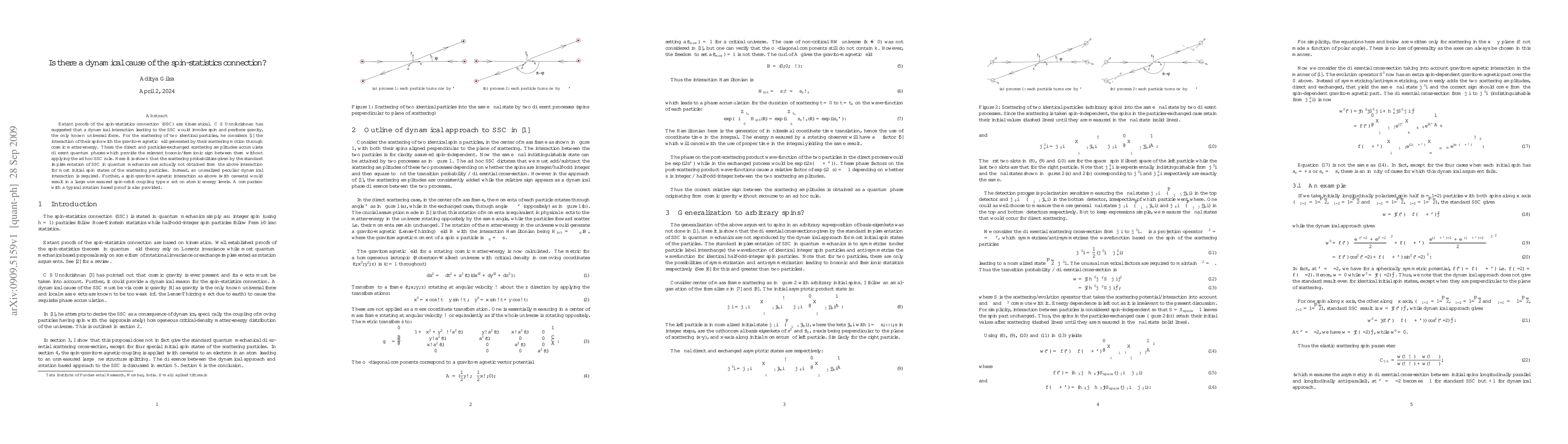 Researchers found that a dynamical cause of the spin-statistics connection requires an unrealized interaction beyond gravito-magnetic forces, contradicting existing kinematical proofs.