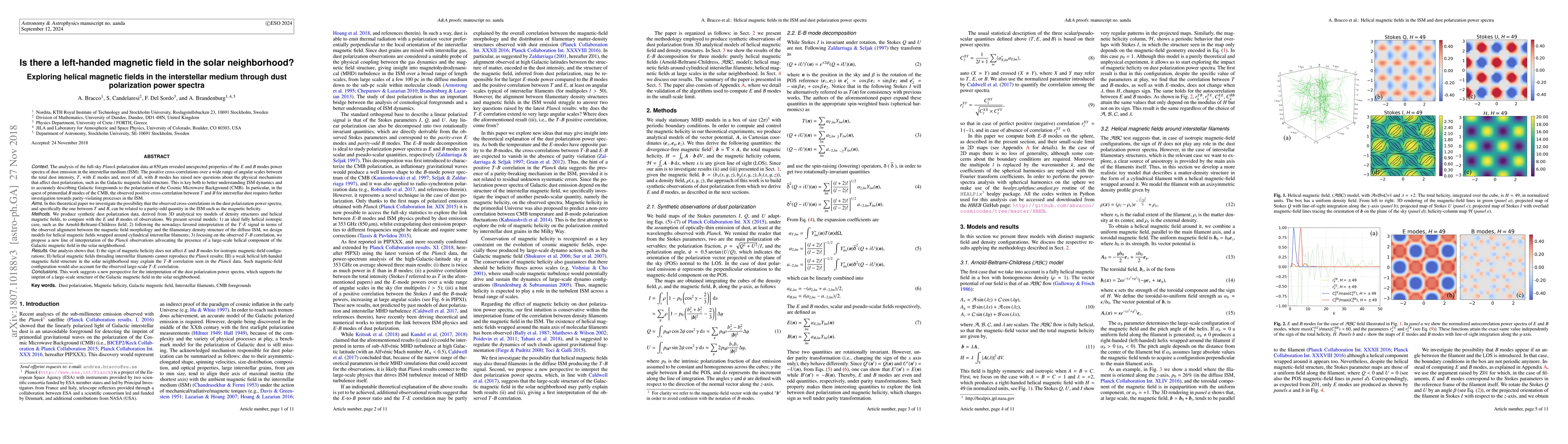 This paper explores the possibility of a left-handed helical magnetic field in the solar neighborhood using Planck polarization data. It finds that a weak left-handed helical magnetic field may explain the observed correlation between total dust intensity and B modes, suggesting a new interpretation of the Galactic magnetic-field structure.