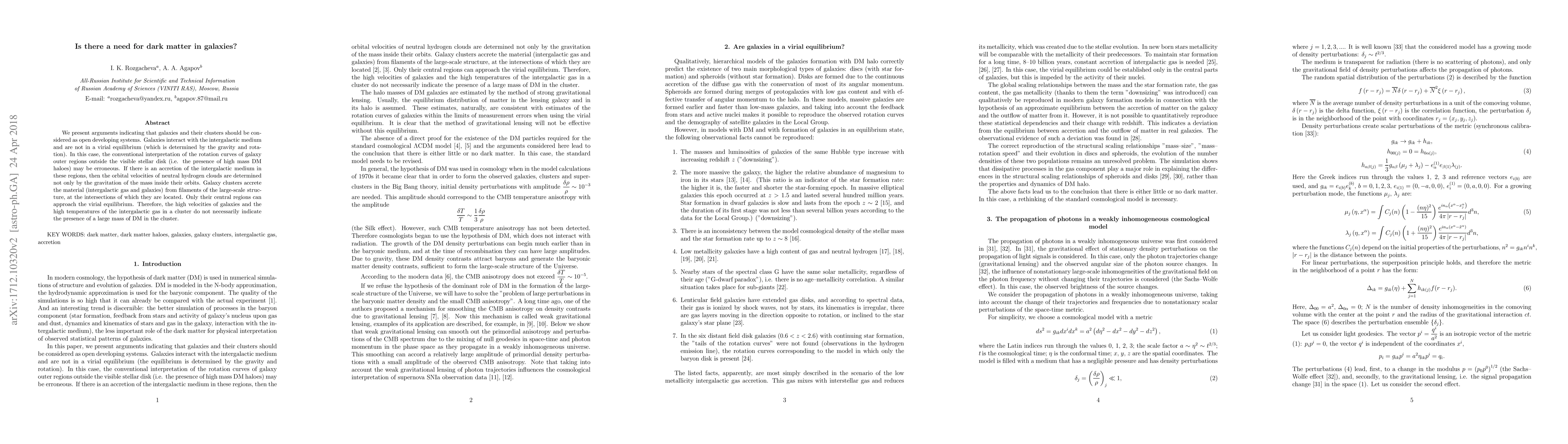 New research suggests that galaxies may not need dark matter to explain their rotation curves and high velocities, as accretion of intergalactic medium could be the cause. This challenges the conventional interpretation of galaxy behavior in clusters.