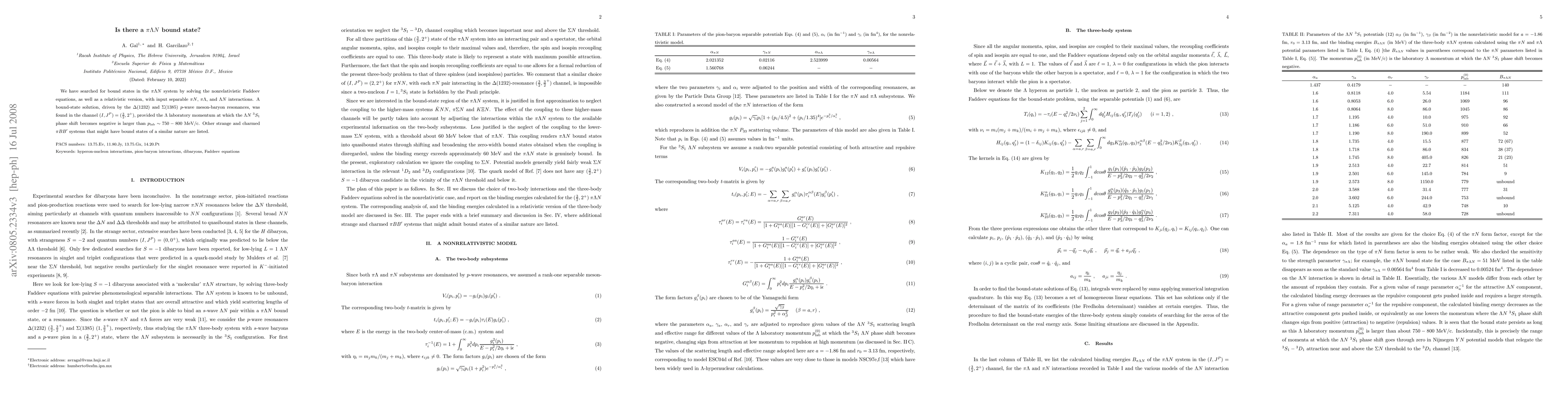 We have searched for bound states in the pion-Lambda-nucleon system by solving the nonrelativistic Faddeev equations, as well as a relativistic version, with input separable pion-nucleon, pion-Lambda, and Lambda-nucleon interactions. A bound-state solution, driven by the Delta(1232) and Sigma(1385) p-wave meson-baryon resonances, was found in the channel (I,JP)=(3/2,2+), provided the Lambda lab momentum at which the Lambda-nucleon S=1,L=0,J=1 phase shift becomes negative is larger than about 750-800 MeV/c. Other strange and charmed pion-baryon-baryon systems that might have bound states of a similar nature are listed.
