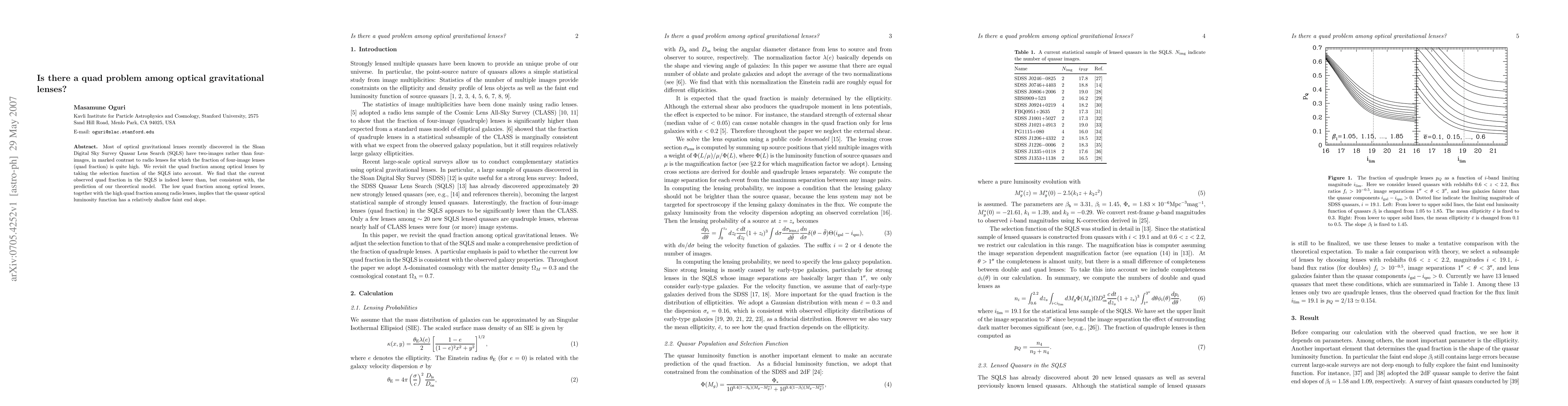 Most of optical gravitational lenses recently discovered in the Sloan Digital Sky Survey Quasar Lens Search (SQLS) have two-images rather than four-images, in marked contrast to radio lenses for which the fraction of four-image lenses (quad fraction) is quite high. We revisit the quad fraction among optical lenses by taking the selection function of the SQLS into account. We find that the current observed quad fraction in the SQLS is indeed lower than, but consistent with, the prediction of our theoretical model. The low quad fraction among optical lenses, together with the high quad fraction among radio lenses, implies that the quasar optical luminosity function has a relatively shallow faint end slope.