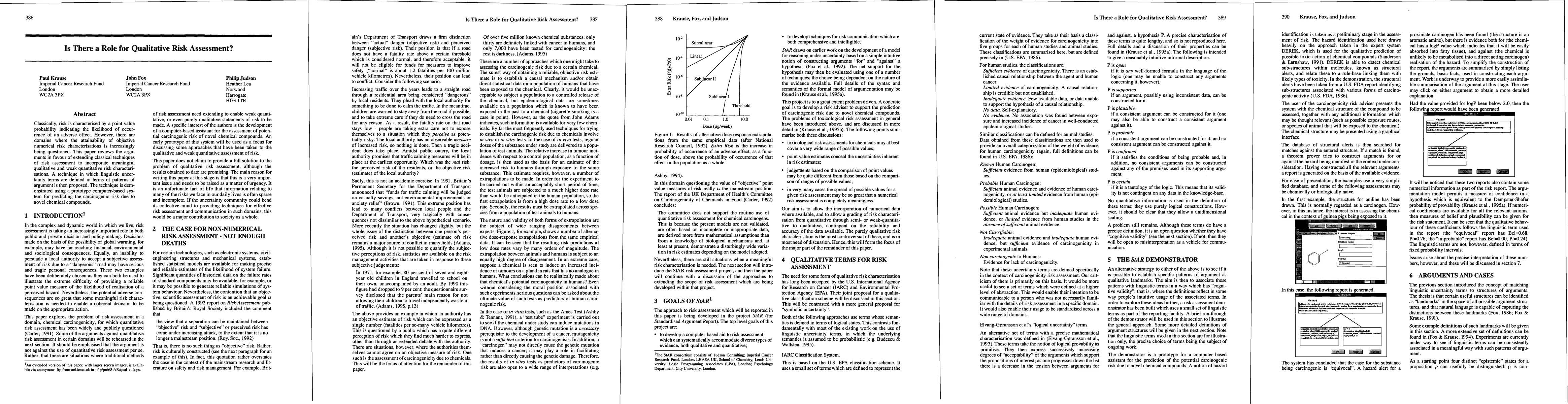 This paper argues for the inclusion of qualitative and weak quantitative risk assessments in domains where objective numerical risk characterizations are unattainable. It proposes a linguistic uncertainty term technique and demonstrates its application in predicting carcinogenic risks for novel chemical compounds using a computer-based system.