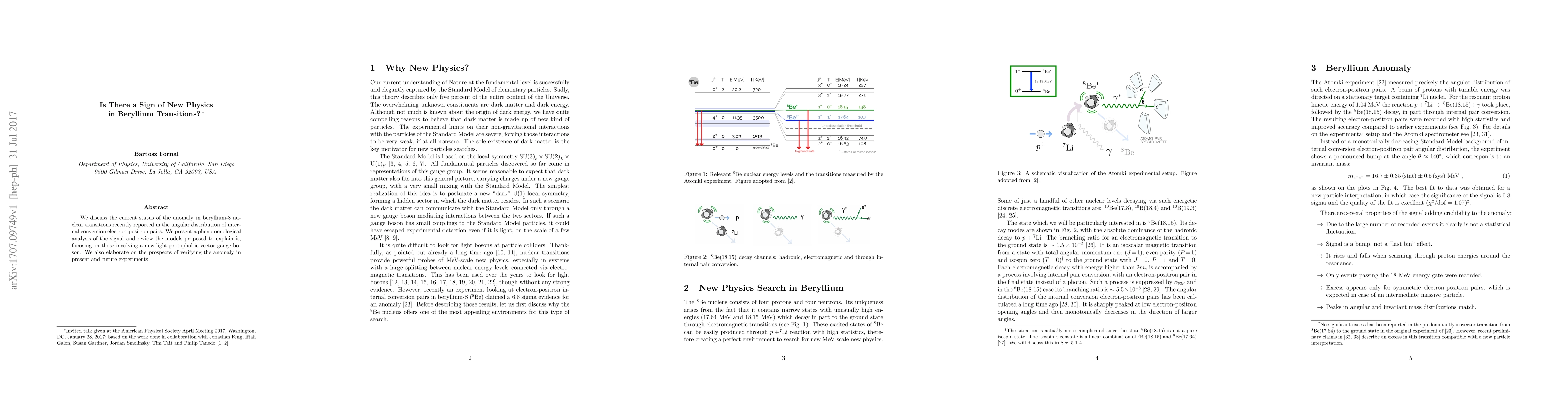 We discuss the current status of the anomaly in beryllium-8 nuclear transitions recently reported in the angular distribution of internal conversion electron-positron pairs. We present a phenomenological analysis of the signal and review the models proposed to explain it, focusing on those involving a new light protophobic vector gauge boson. We also elaborate on the prospects of verifying the anomaly in present and future experiments.