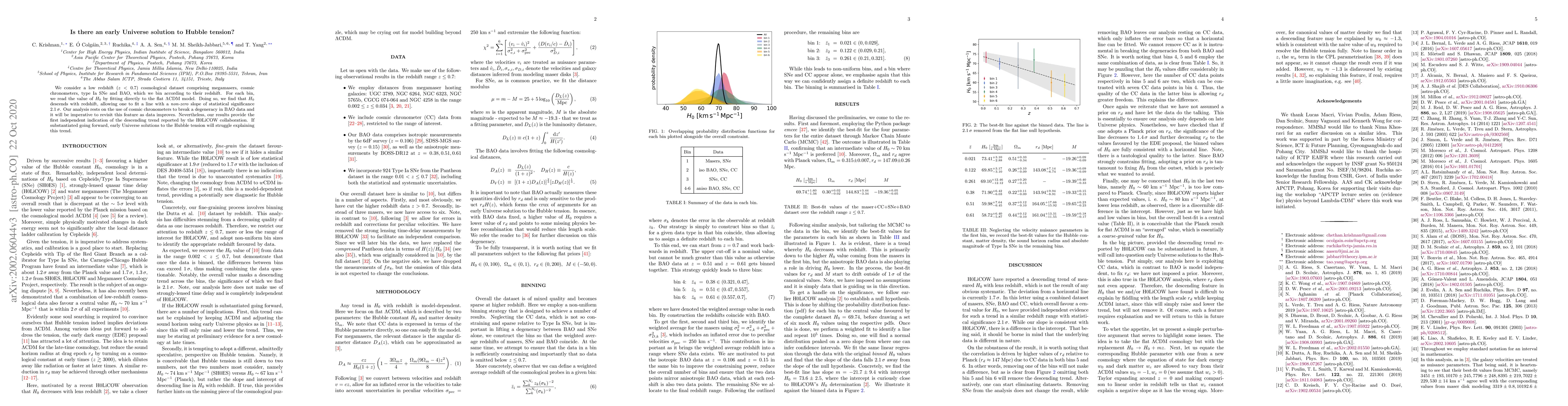 We consider a low redshift $(z<0.7)$ cosmological dataset comprising megamasers, cosmic chronometers, type Ia SNe and BAO, which we bin according to their redshift. For each bin, we read the value of $H_0$ by fitting directly to the flat $\Lambda$CDM model. Doing so, we find that $H_0$ descends with redshift, allowing one to fit a line with a \textit{non-zero} slope of statistical significance $2.1 \, \sigma$. Our analysis rests on the use of cosmic chronometers to break a degeneracy in BAO data and it will be imperative to revisit this feature as data improves. Nevertheless, our results provide the first independent indication of the descending trend reported by the H0LiCOW collaboration. If substantiated going forward, early Universe solutions to the Hubble tension will struggle explaining this trend.