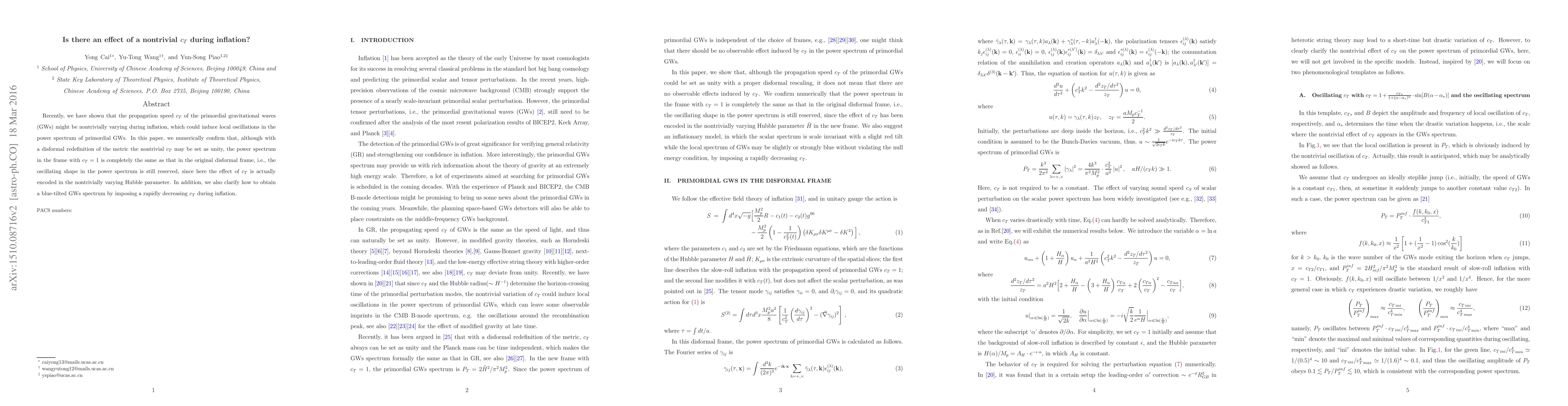 Recently, we have shown that the propagation speed $c_T$ of the primordial gravitational waves (GWs) might be nontrivially varying during inflation, which could induce local oscillations in the power spectrum of primordial GWs. In this paper, we numerically confirm that, although with a disformal redefinition of the metric the nontrivial $c_T$ may be set as unity, the power spectrum in the frame with $c_T=1$ is completely the same as that in the original disformal frame, i.e., the oscillating shape in the power spectrum is still reserved, since here the effect of $c_T$ is actually encoded in the nontrivially varying Hubble parameter. In addition, we also clarify how to obtain a blue-tilted GWs spectrum by imposing a rapidly decreasing $c_T$ during inflation.
