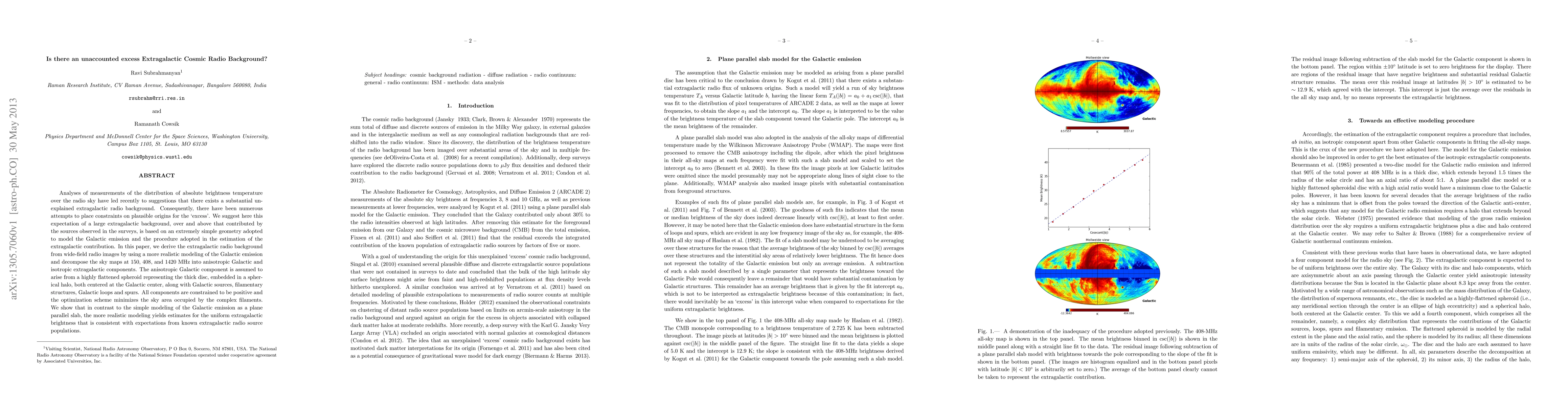 This study reevaluates the extragalactic radio background by using more realistic models of Galactic emission, finding that the previously suggested excess can be explained by known sources when a detailed Galactic structure is considered. The results suggest no need for an additional unknown extragalactic component beyond current source populations.