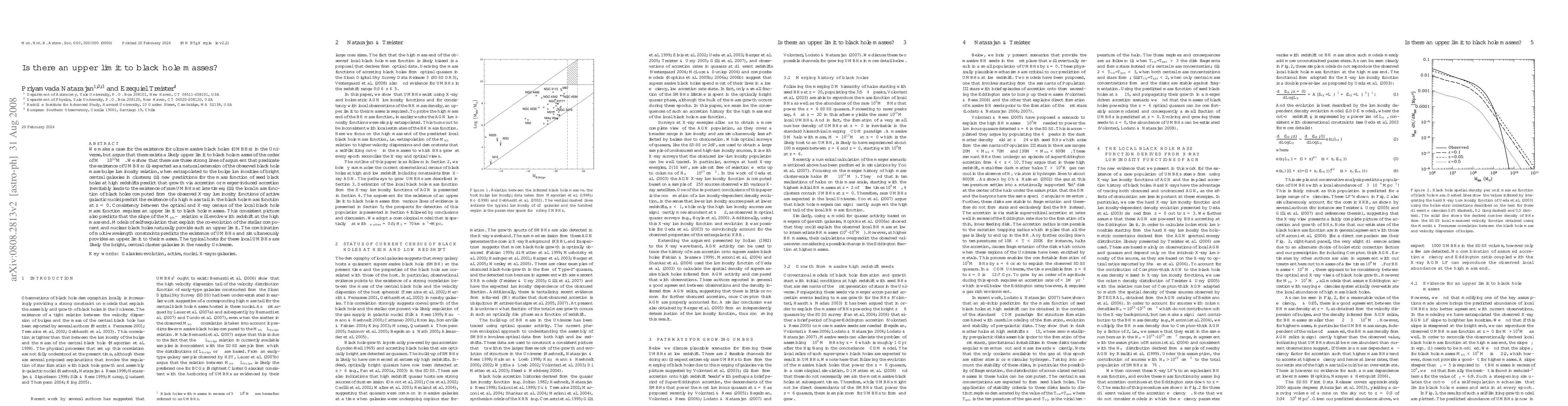 Researchers argue that there is a likely upper limit to black hole masses of $M hickapprox 10^{10} ext{M}_{igodot}$, based on predictions from the mass function of seed black holes, consistency between optical and X-ray census, and models of self-regulation.