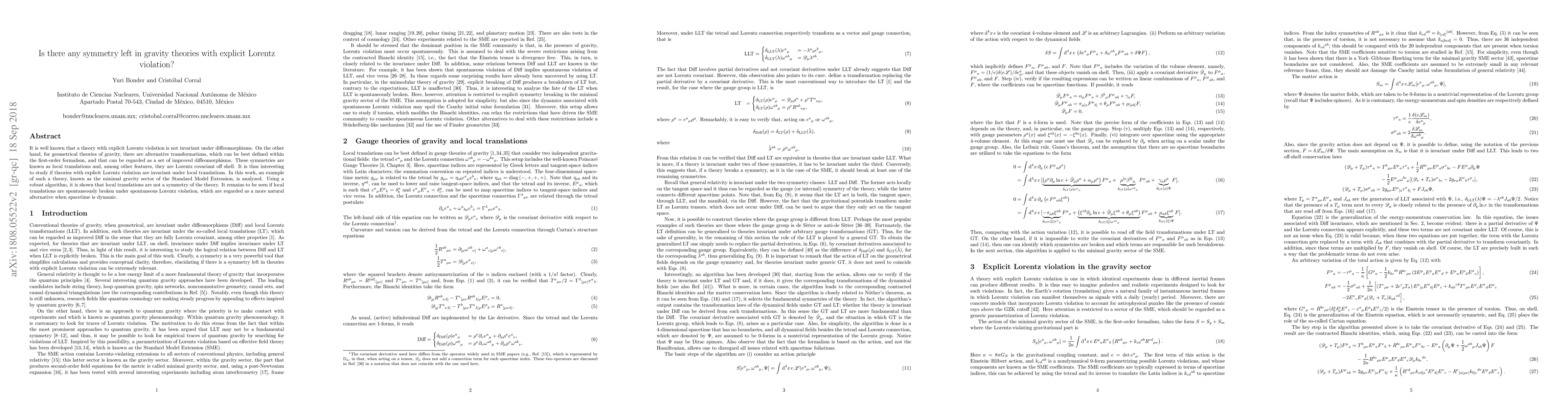 This paper explores whether theories with explicit Lorentz violation retain any symmetry under local translations, a type of improved diffeomorphism. It finds that the minimal gravity sector of the Standard Model Extension does not exhibit this symmetry, suggesting potential spontaneous breaking of local translations under spontaneous Lorentz violation.