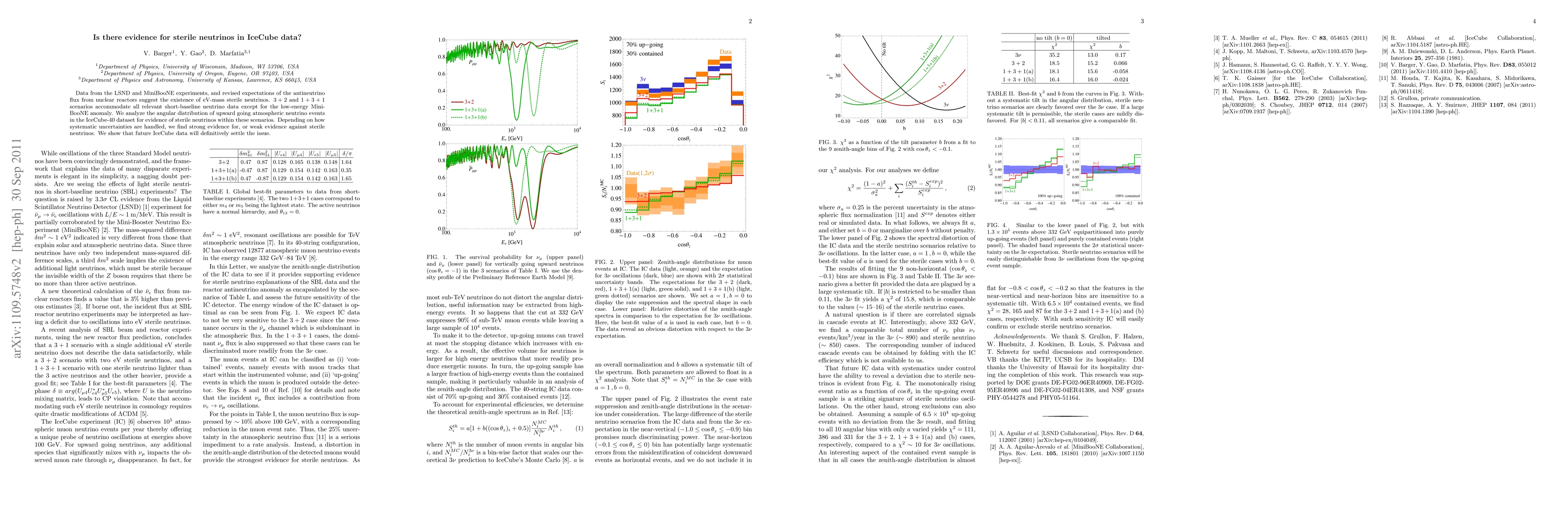 The paper presents a detailed analysis of upward-going atmospheric neutrino events in IceCube data to probe sterile neutrino existence within specific mixing scenarios.