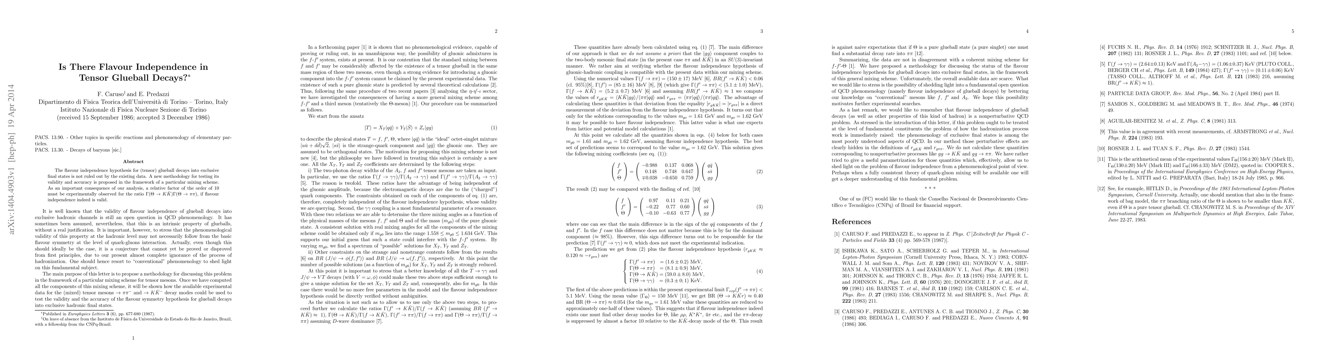 New research proposes a method to test flavour independence in tensor glueball decays, suggesting a relative factor of 10 must be observed if it is valid, but existing data does not rule it out.
