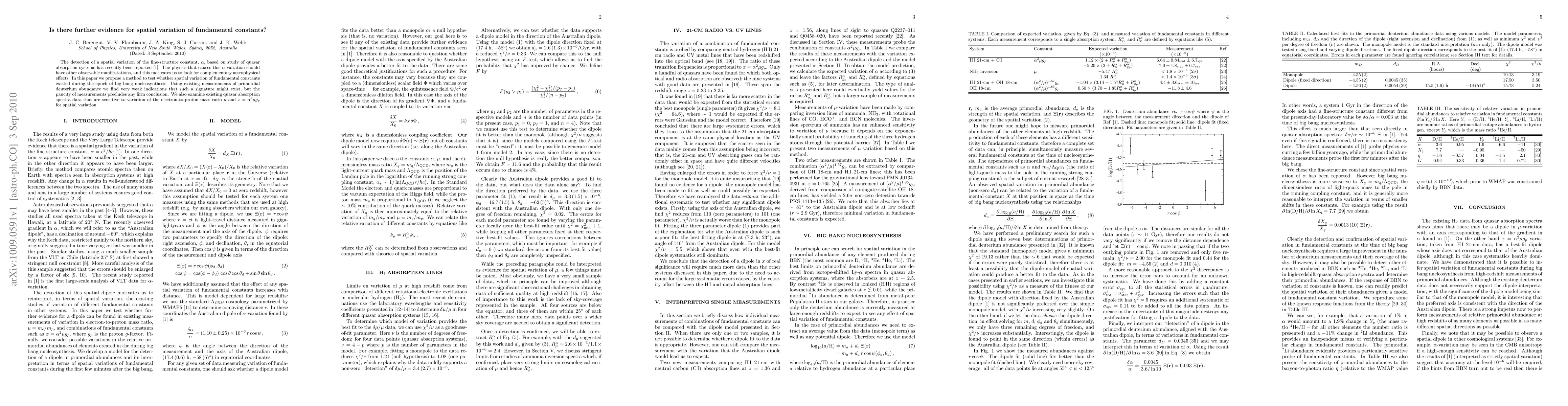 This paper explores the possibility of spatial variation of fundamental constants, specifically the fine-structure constant and the electron-to-proton mass ratio, using data from quasar absorption systems and big bang nucleosynthesis. While weak indications of such variation are found, the limited data prevents definitive conclusions.
