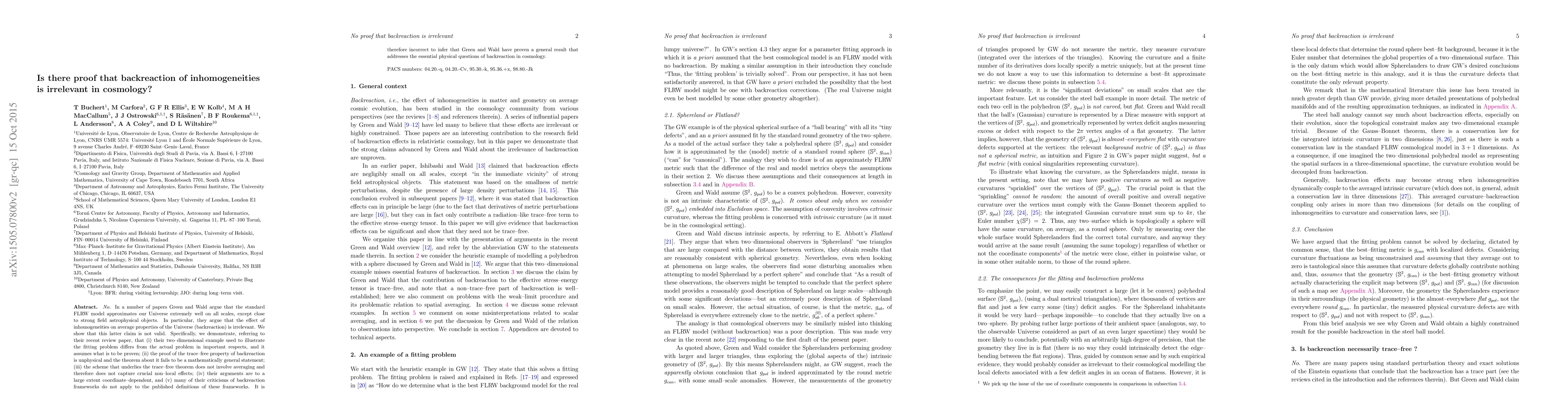 No. In a number of papers Green and Wald argue that the standard FLRW model approximates our Universe extremely well on all scales, except close to strong field astrophysical objects. In particular, they argue that the effect of inhomogeneities on average properties of the Universe (backreaction) is irrelevant. We show that this latter claim is not valid. Specifically, we demonstrate, referring to their recent review paper, that (i) their two-dimensional example used to illustrate the fitting problem differs from the actual problem in important respects, and it assumes what is to be proven; (ii) the proof of the trace-free property of backreaction is unphysical and the theorem about it fails to be a mathematically general statement; (iii) the scheme that underlies the trace-free theorem does not involve averaging and therefore does not capture crucial non-local effects; (iv) their arguments are to a large extent coordinate-dependent, and (v) many of their criticisms of backreaction frameworks do not apply to the published definitions of these frameworks. It is therefore incorrect to infer that Green and Wald have proven a general result that addresses the essential physical questions of backreaction in cosmology.