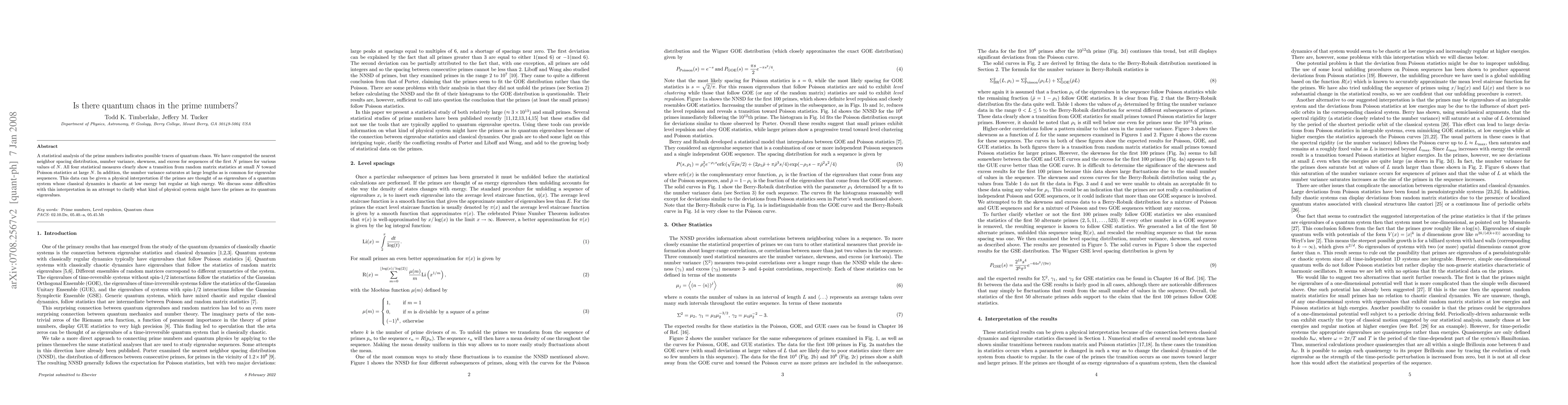 This paper investigates statistical traces of quantum chaos in prime numbers, finding a transition from random matrix to Poisson statistics as the sequence length increases. The study suggests that primes may represent eigenvalues of a quantum system with chaotic low-energy dynamics.