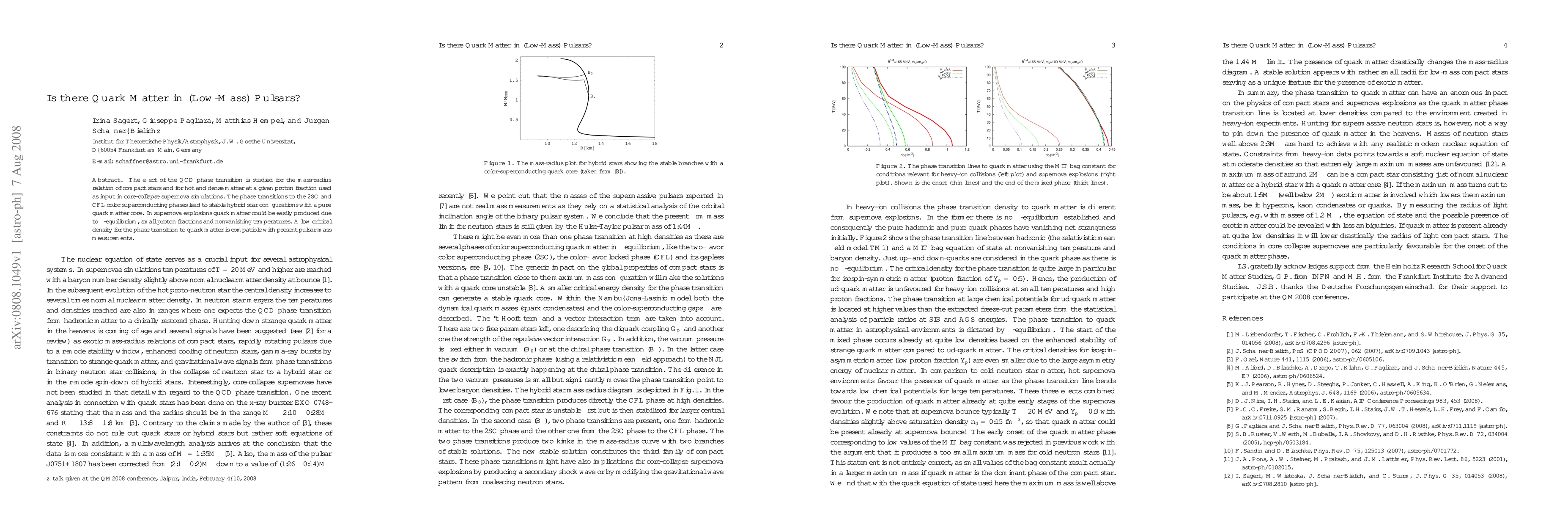The study suggests that quark matter could be produced in low-mass pulsars due to phase transitions during core collapse supernova explosions. A low critical density for these transitions is compatible with current pulsar mass measurements.